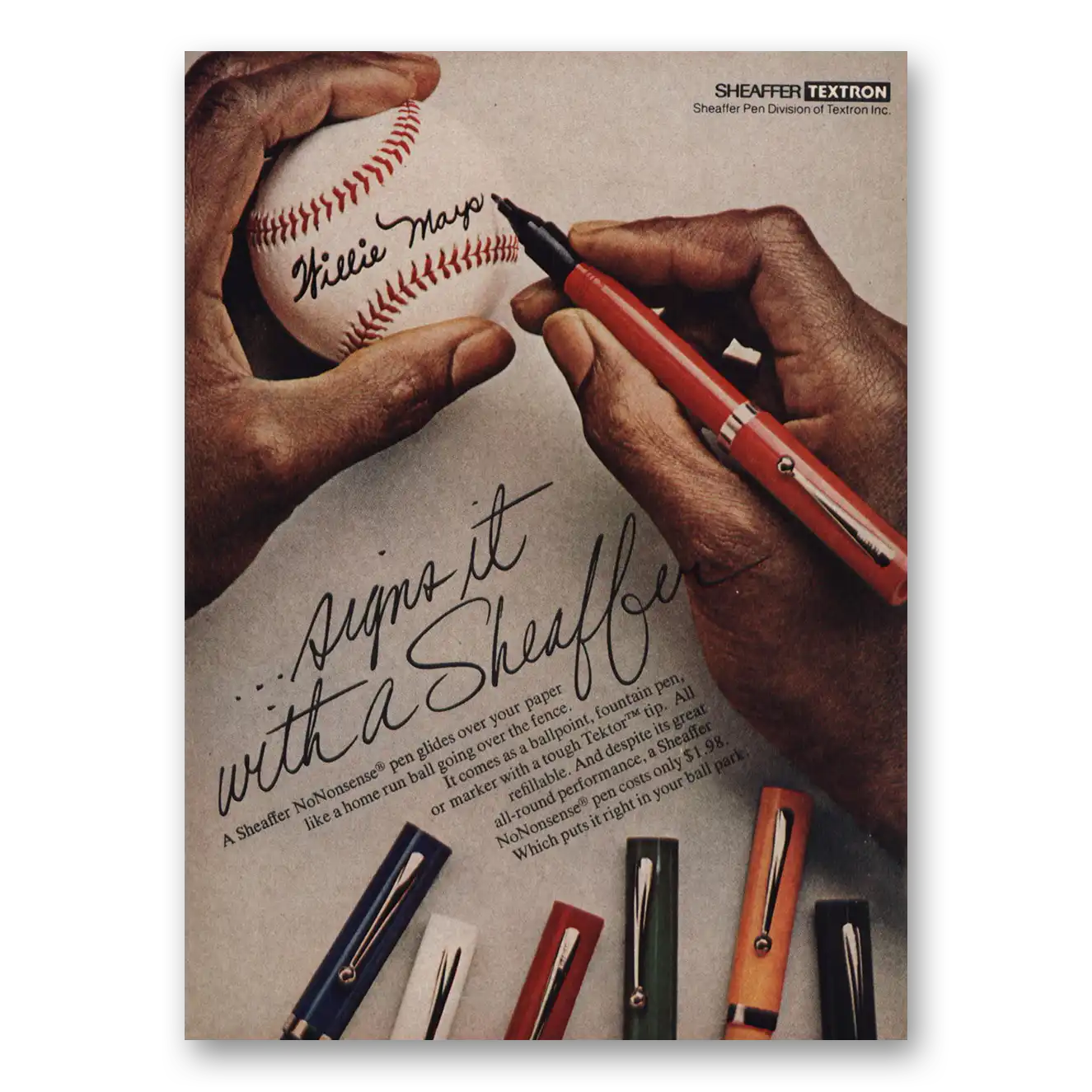 1976 Sheaffers No Nonsence Pen Print Ad | Willie Mays