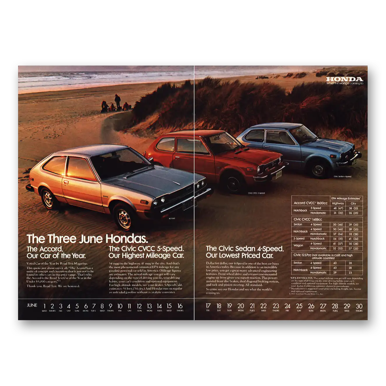 1977 Honda Print Ad | Three June Hondas
