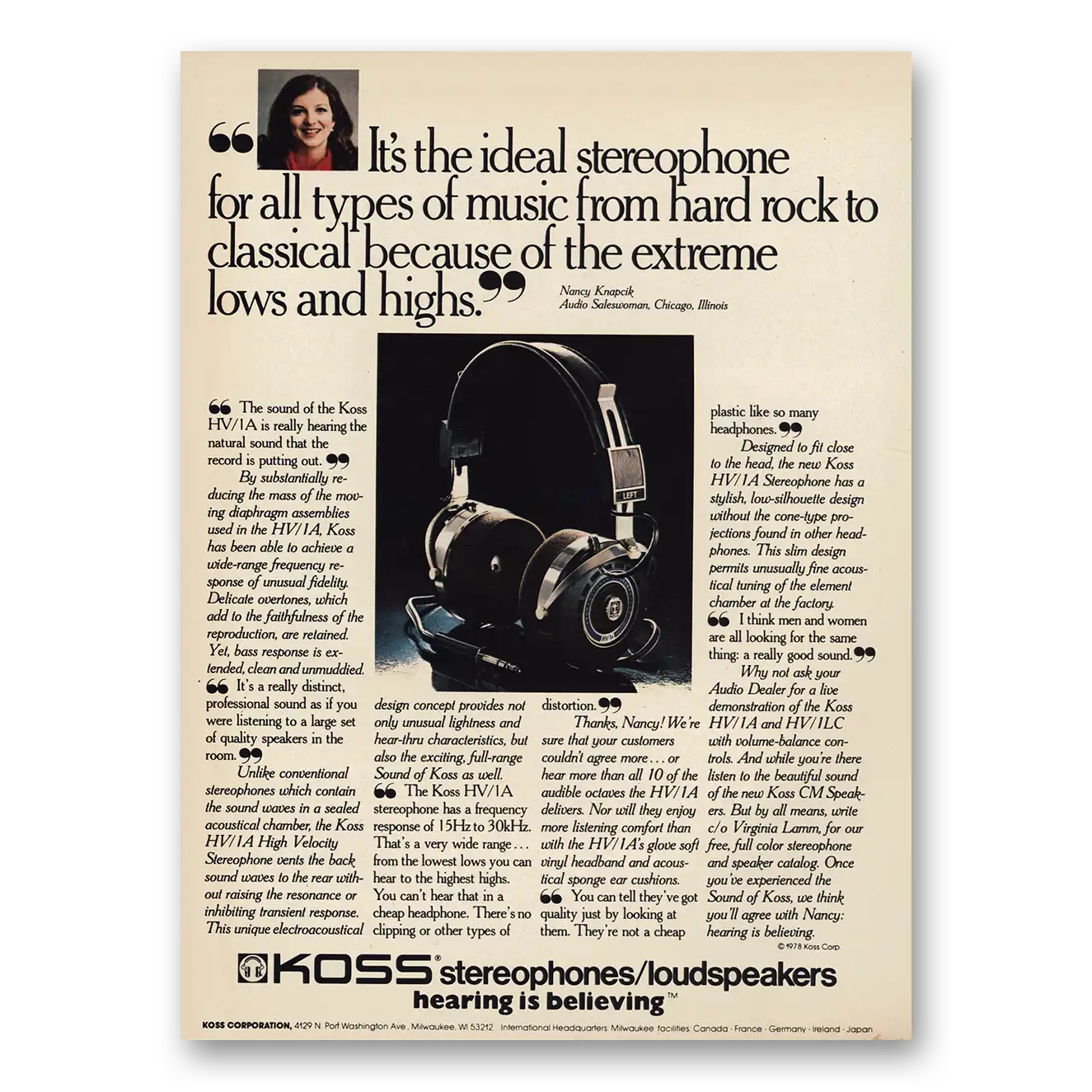 This is an original 1978 Koss Stereophones print ad published by Koss Corporation.