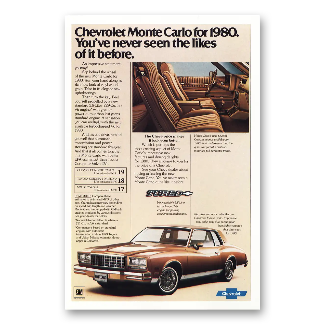 1979 Chevrolet Monte Carlo Print Ad | Never Seen Likes It