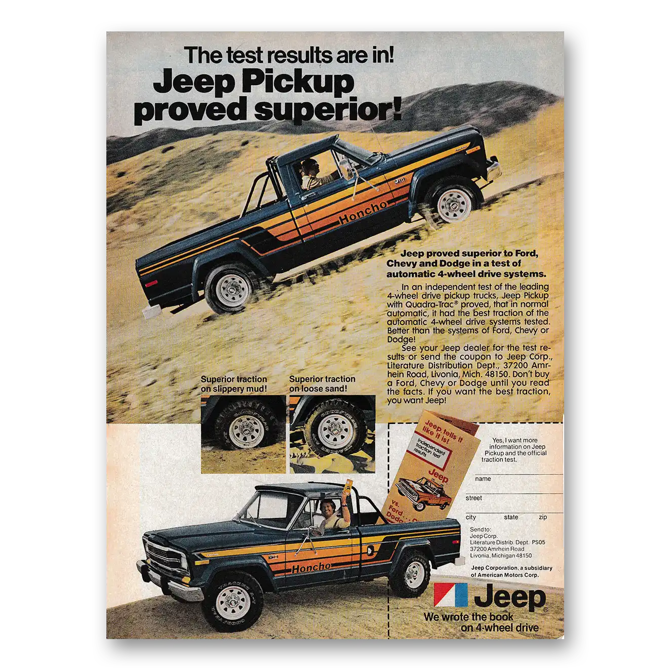 1979 Jeep Honcho Pickup Print Ad | Proved Superior
