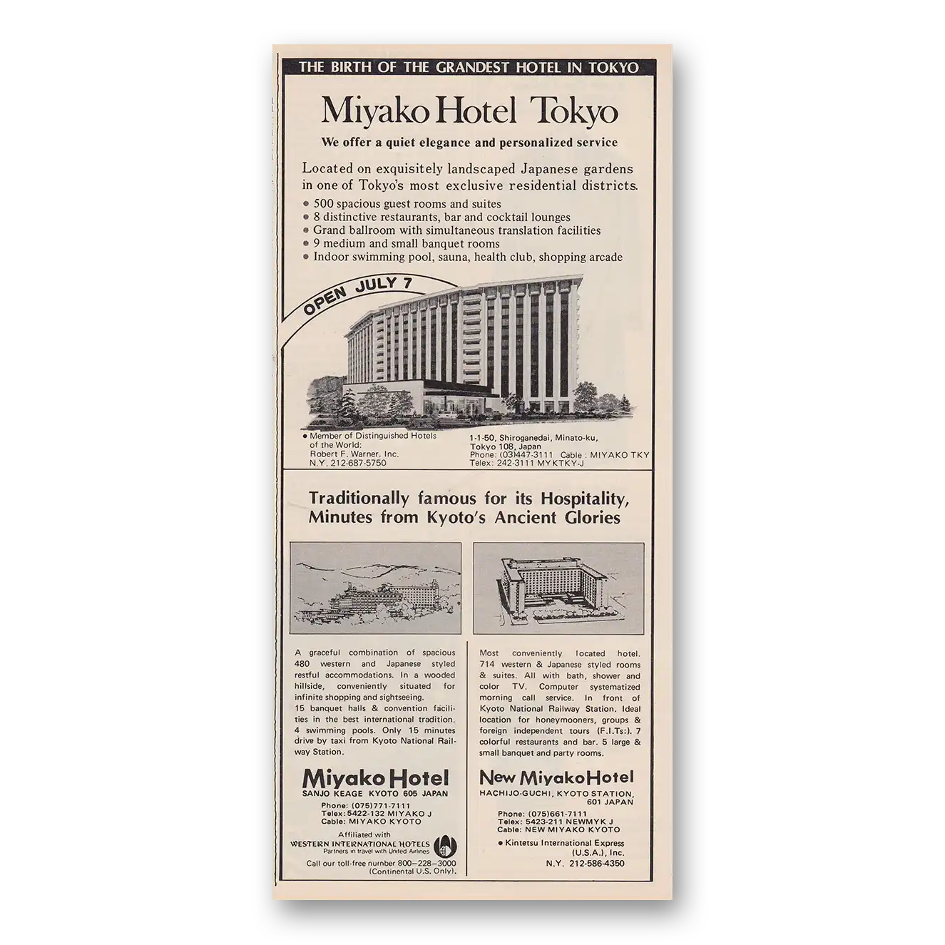 1979 Miyako Hotel Print Ad | Tokyo
