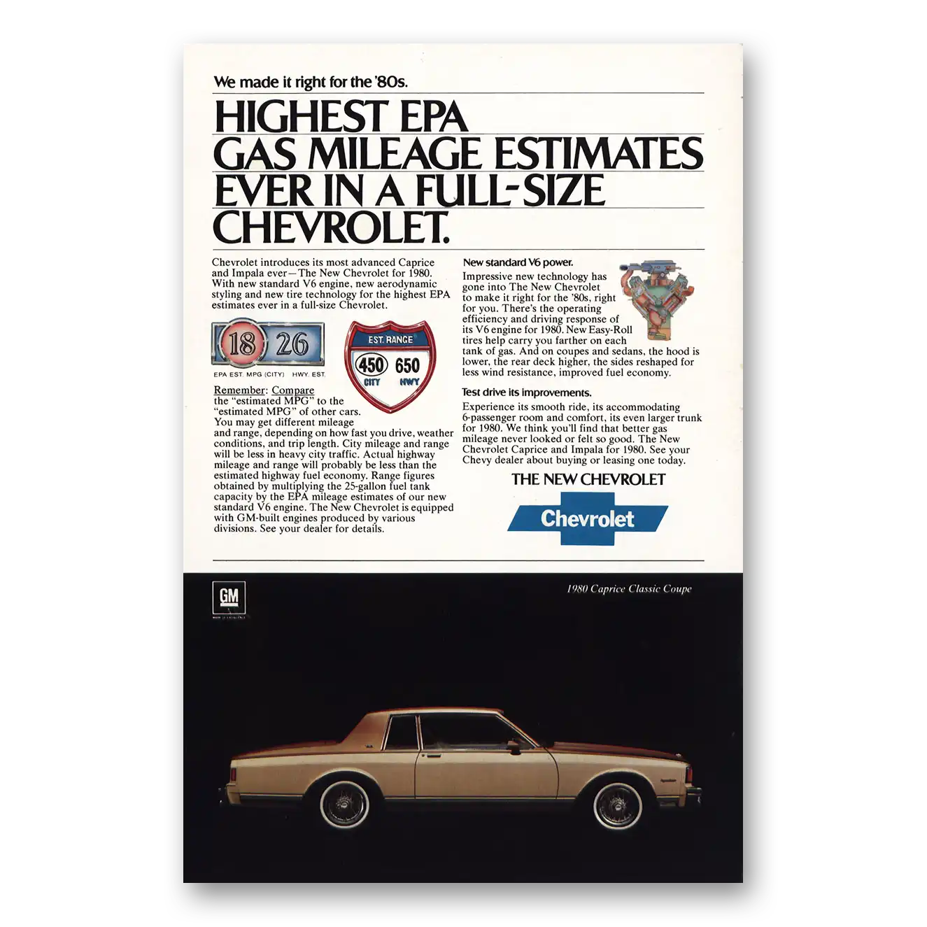 1980 Chevrolet Caprice Print Ad | Highest Epa