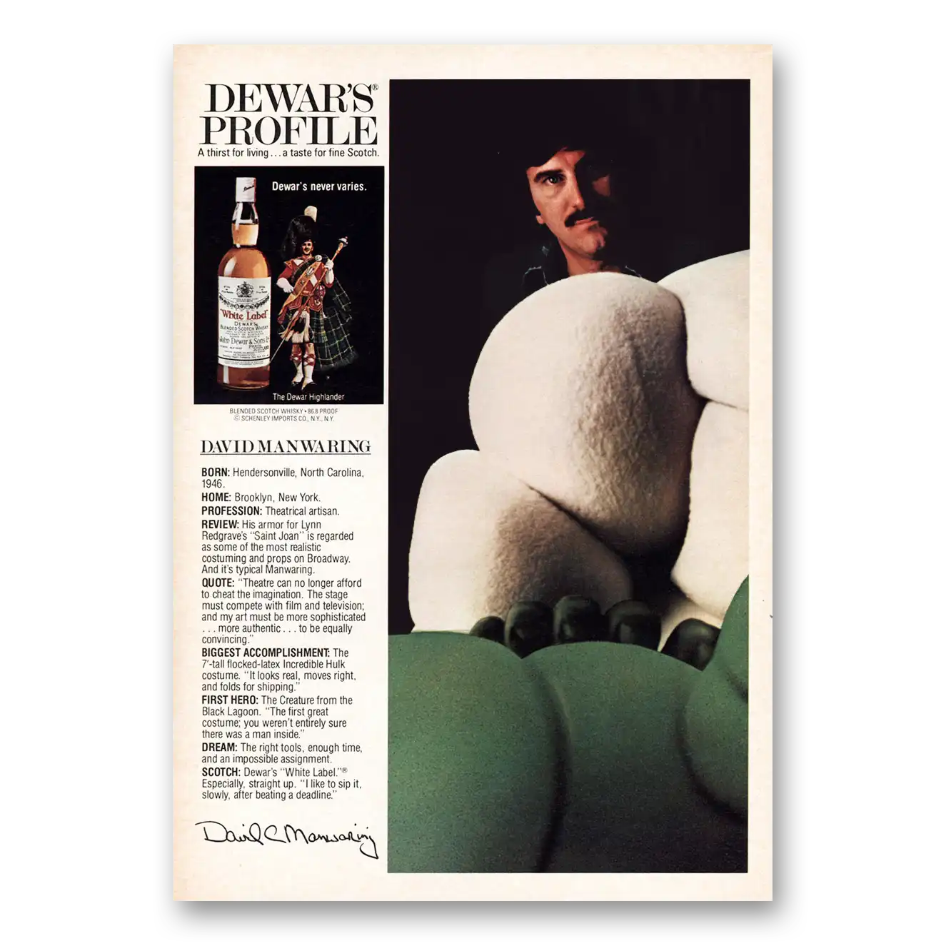 1980 Dewars White Label Print Ad | David Manwaring