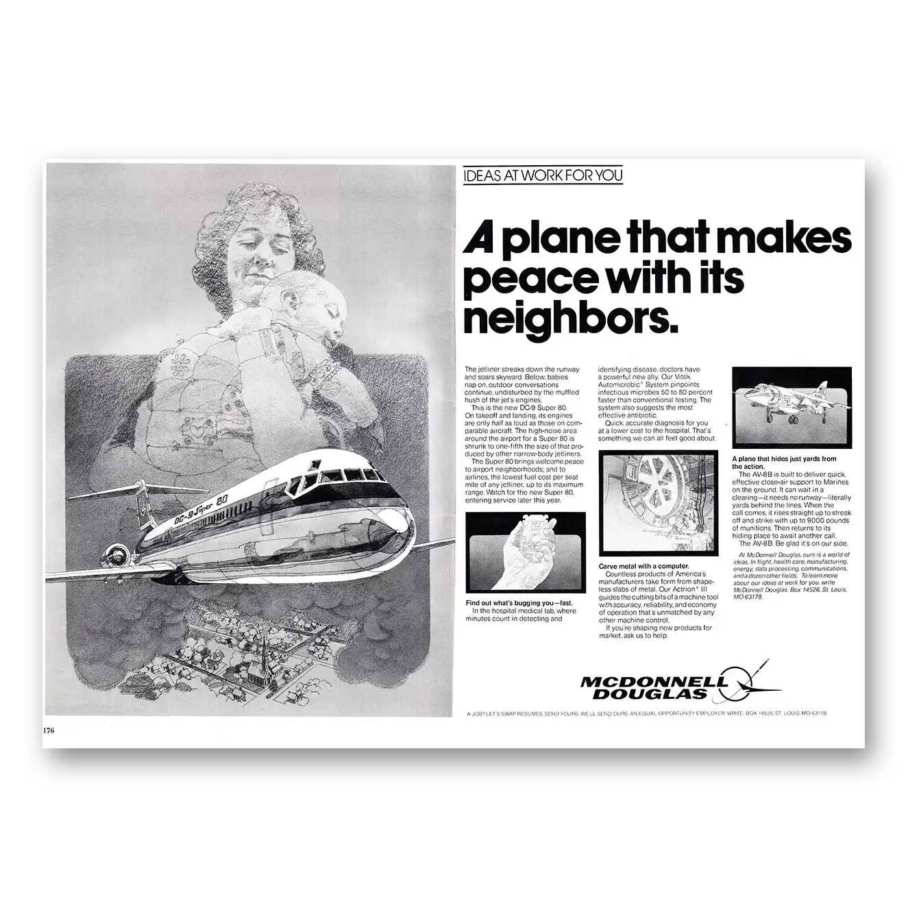 1980 McDonnell Douglas DC9 Super 80 Print Ad | Makes Peace1980 McDonnell Douglas DC9 Super 80 Print Ad | Makes Peace