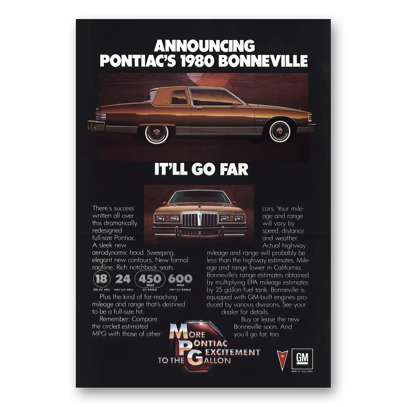 This is an original 1980 Pontiac Bonneville print ad published by Pontiac.