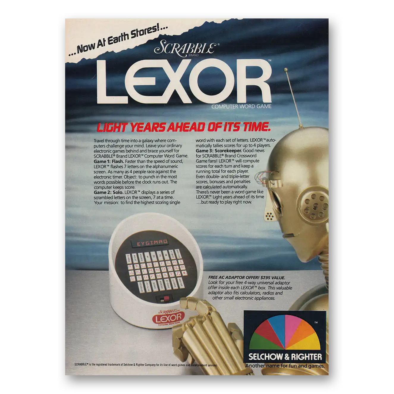 This is an original 1980 Scrabble Lexor print ad published by Selchow & Righter.