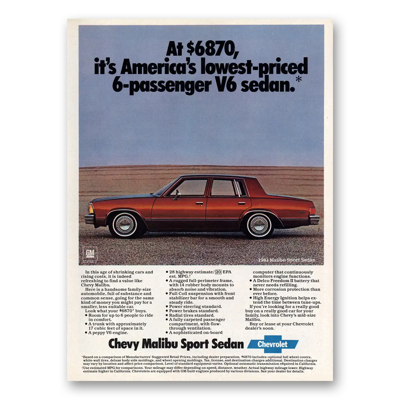 1981 Chevrolet Malibu Print Ad | 6 Passenger