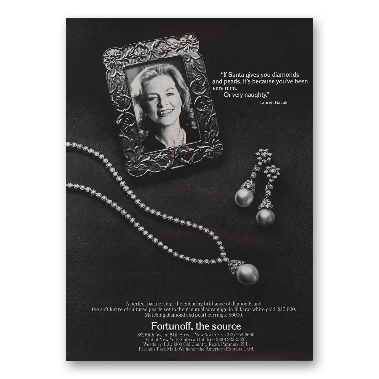 1981 Fortunoff Print Ad | Santa Gives You Diamonds Lauren Bacall