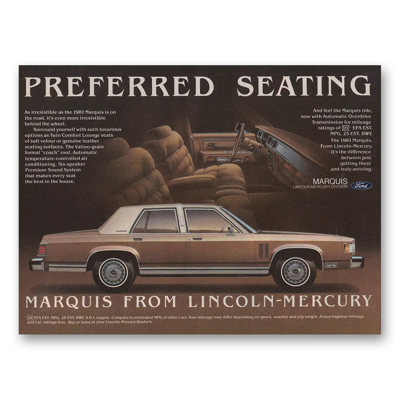 1981 Mercury Marquis Print Ad | Preferred Seating