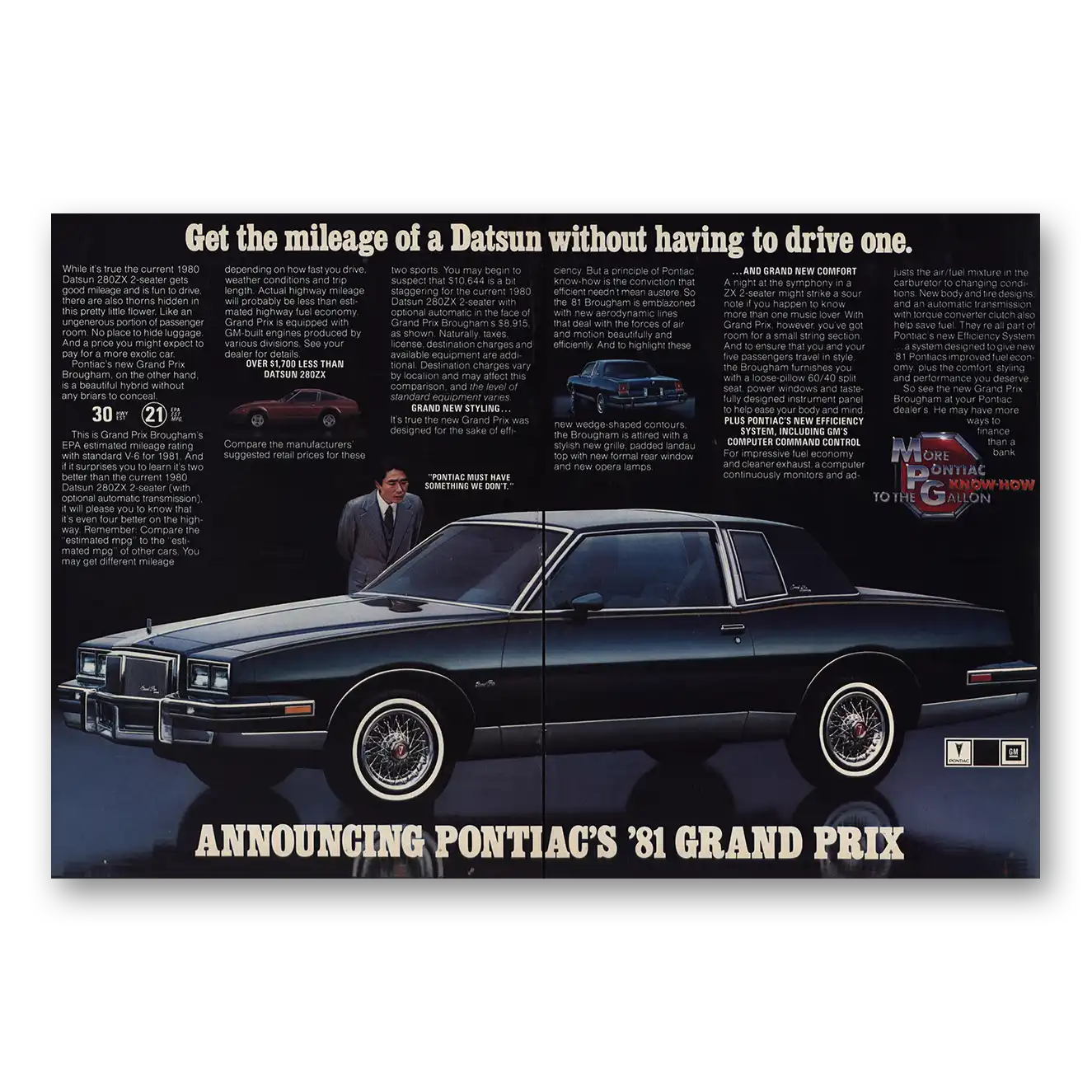1981 Pontiac Grand Prix Print Ad | Mileage Datsun