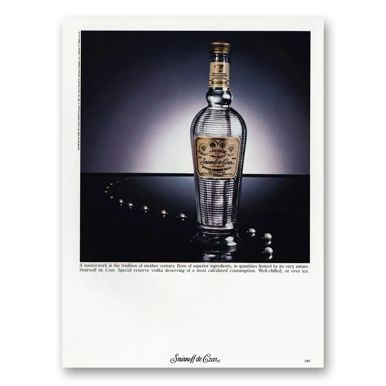 This is an original 1981 Smirnoff de Czar Vodka print ad published by Smirnoff.