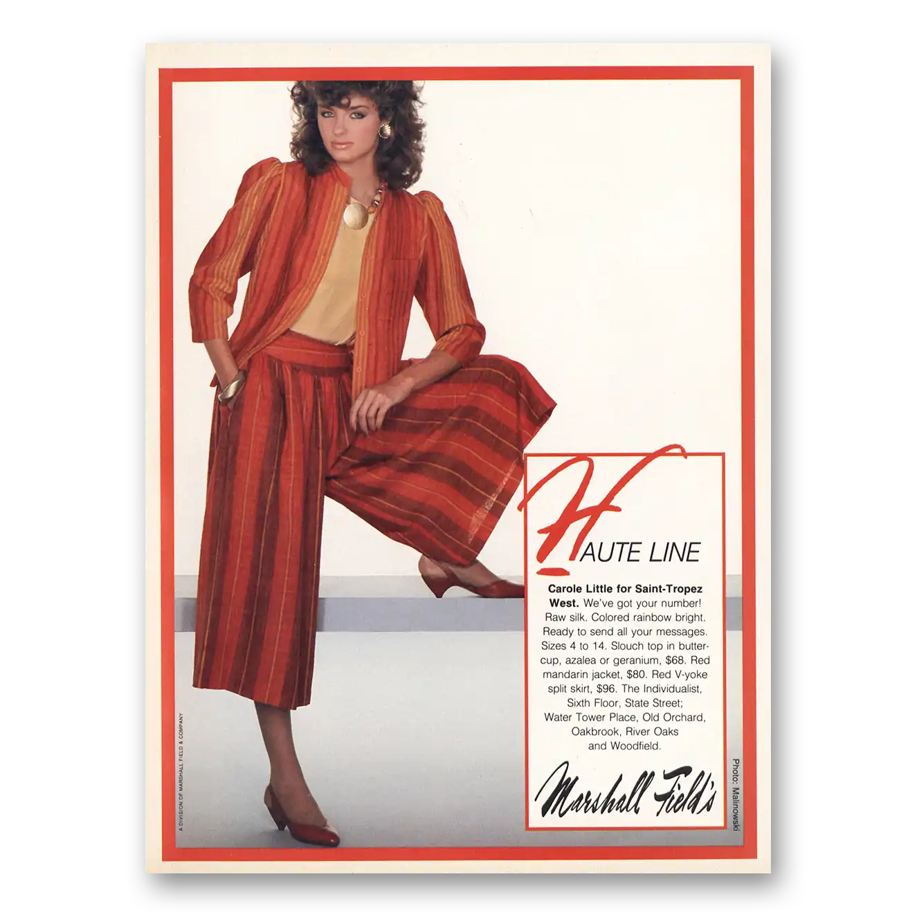 This is an original 1982 Carole Little Fashion print ad published by Marshall Field.