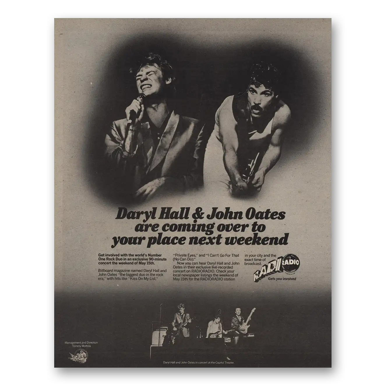 This is an original 1982 Daryl Hall and John Oates Promo print ad published by RadioRadio.