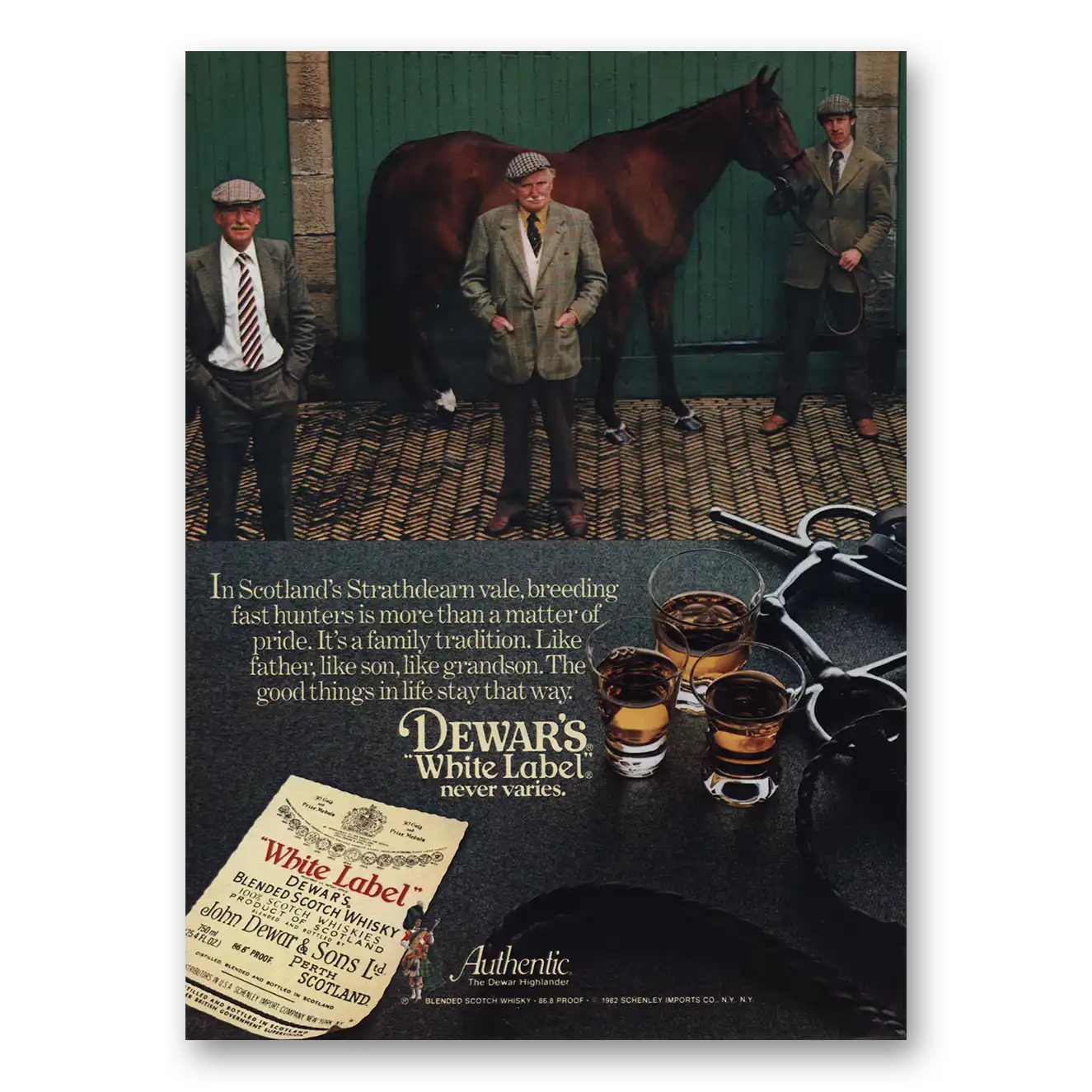 This is an original 1982 Dewars White Label print ad published by Dewars.