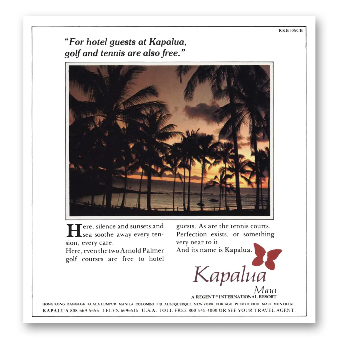 This is an original 1982 Kapalua Maui Resort print ad published by Regent International.