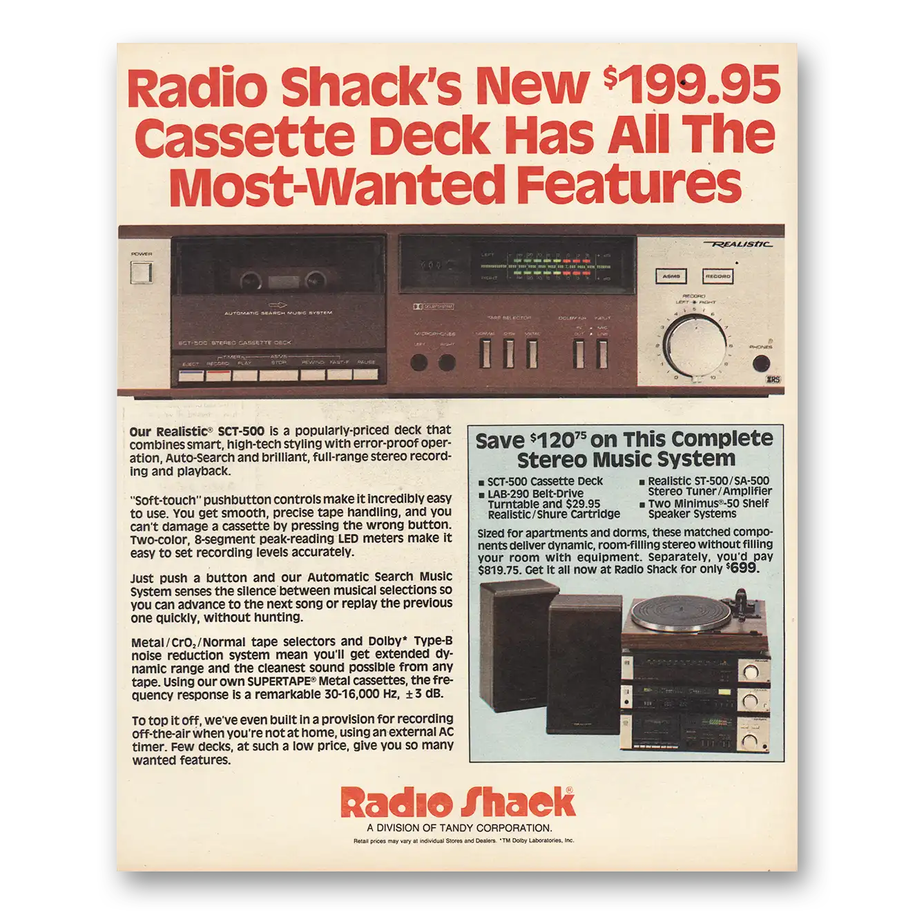 1982 Radio Shack Print Ad | Cassette Deck