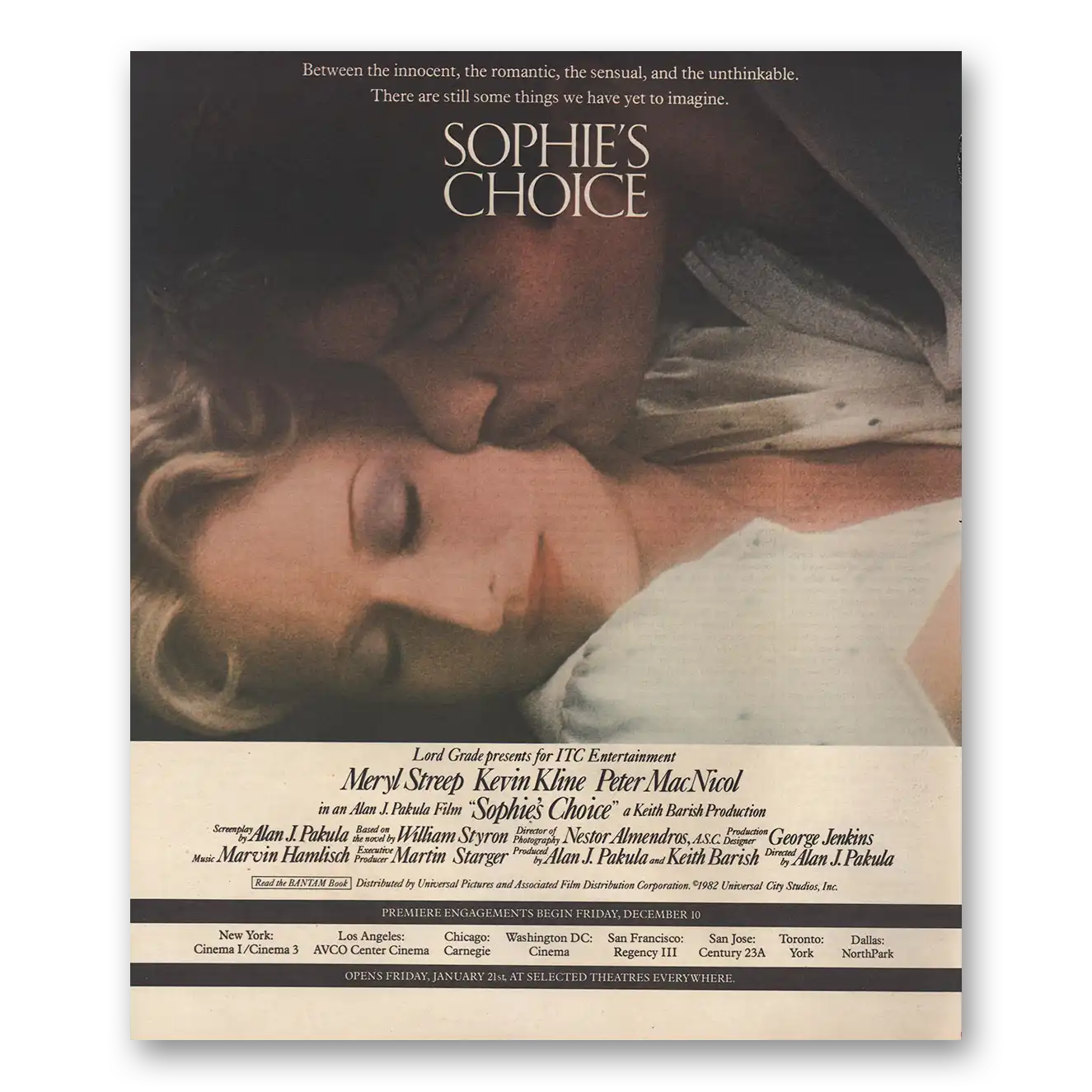 This is an original 1982 Sophies Choice Movie Promo print ad published by Universal Pictures.