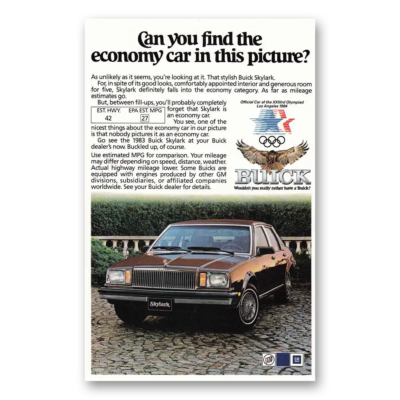 1983 Buick Skylark Print Ad | Economy Car
