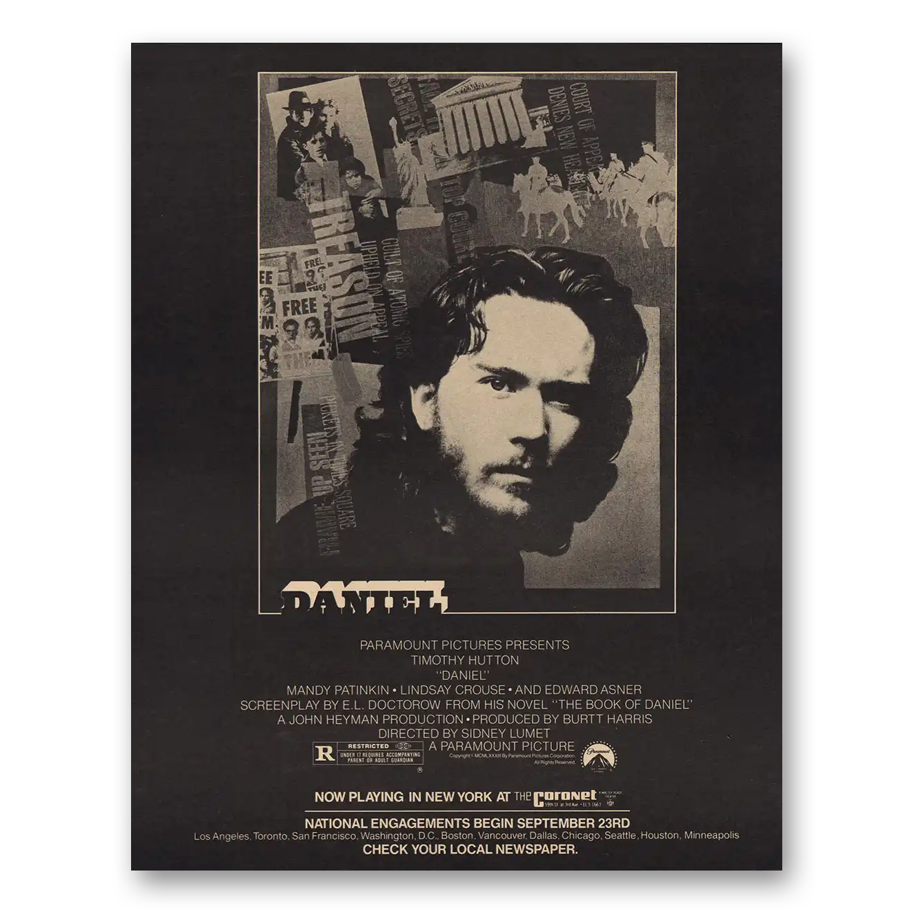 1983 Daniel Promo Print Ad | Timothy Hutton1983 Daniel Promo Print Ad | Timothy Hutton