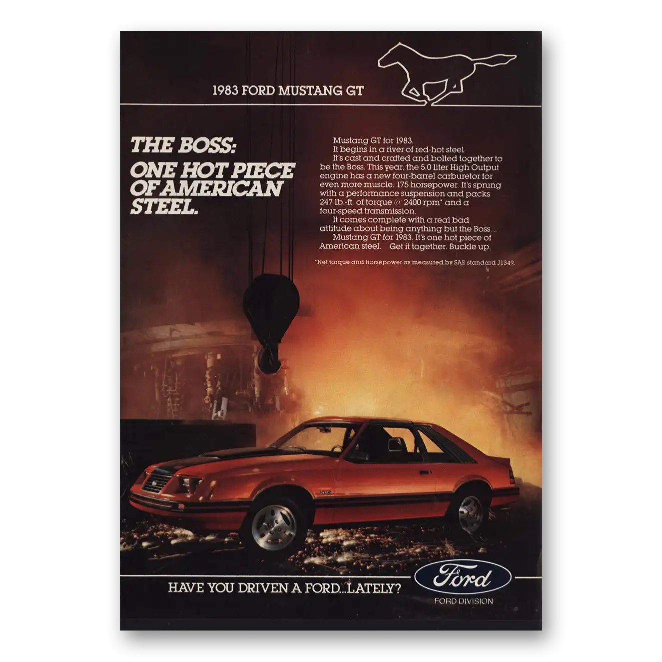 This is an original 1983 Ford Mustang print ad published by Ford.