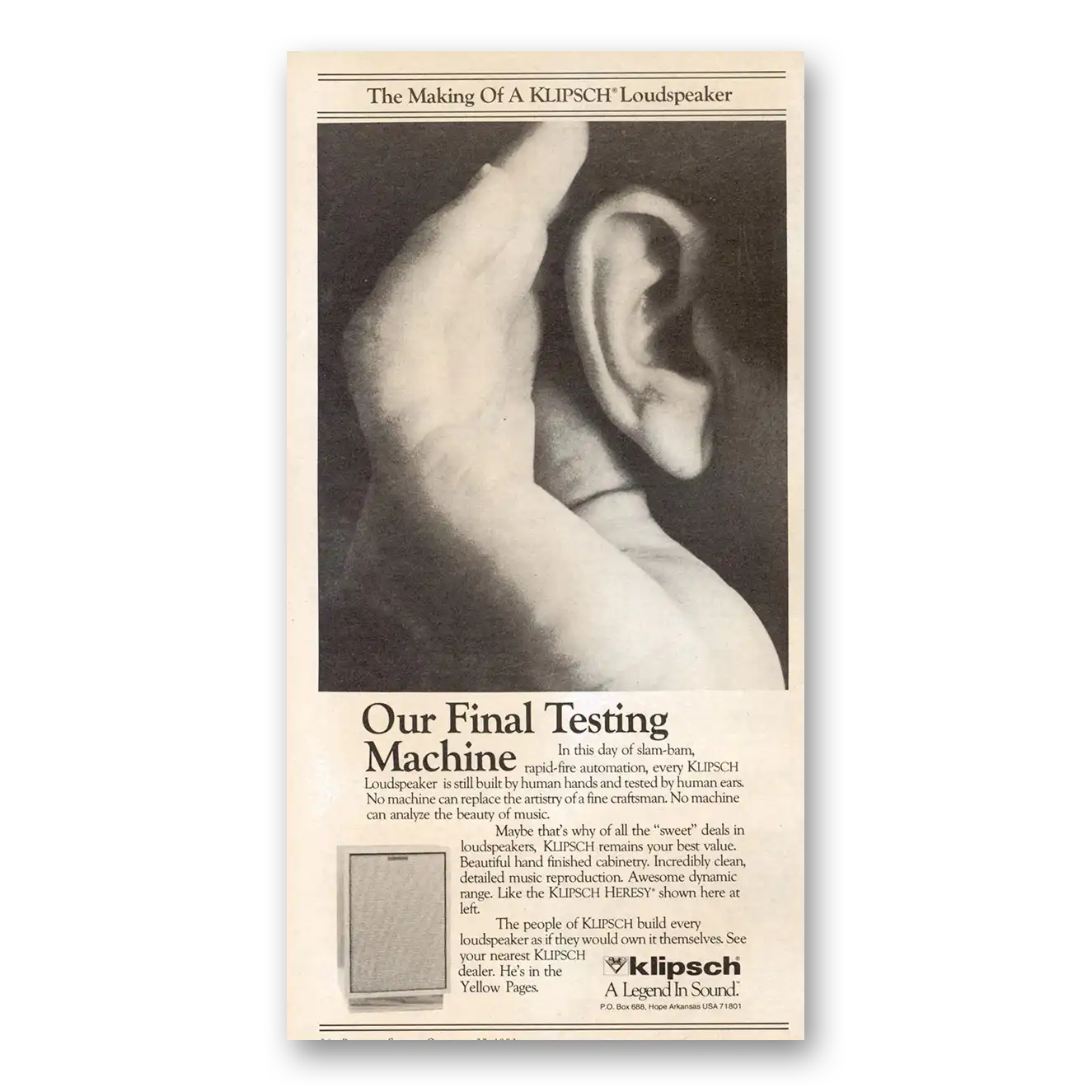 1983 Klipsch Loudspeaker Print Ad | Testing Machine