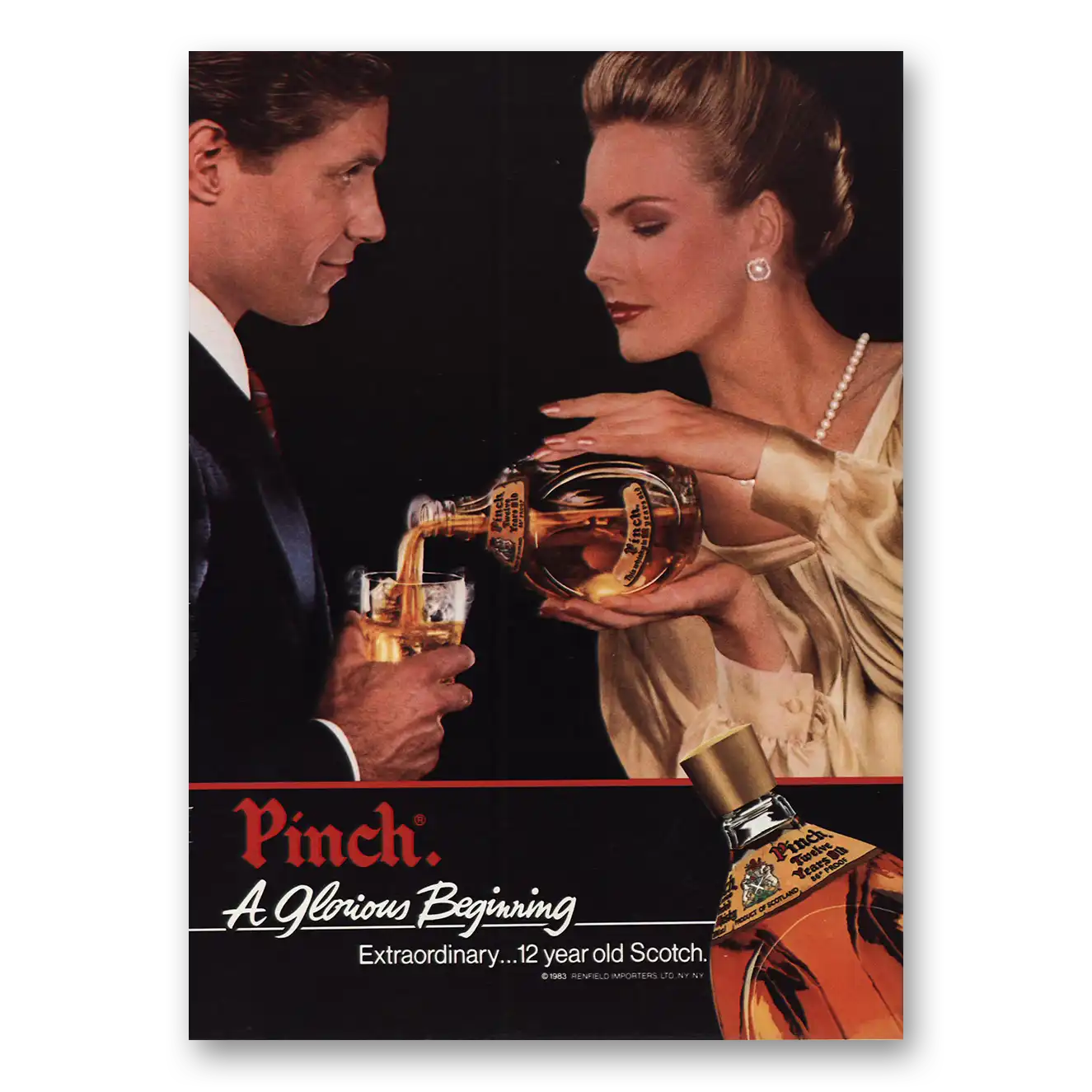 This is an original 1983 Pinch Scotch print ad published by Renfeld Importers.