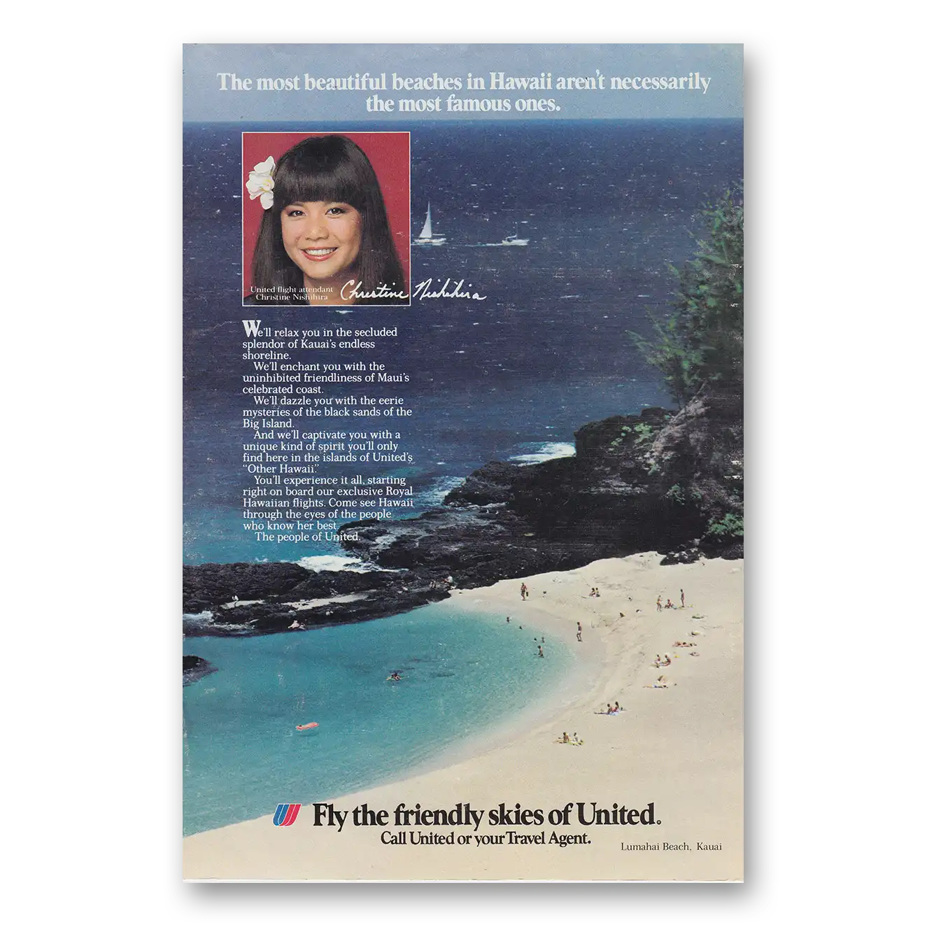 1983 United Airlines Print Ad | Lumahai Beach Kauai