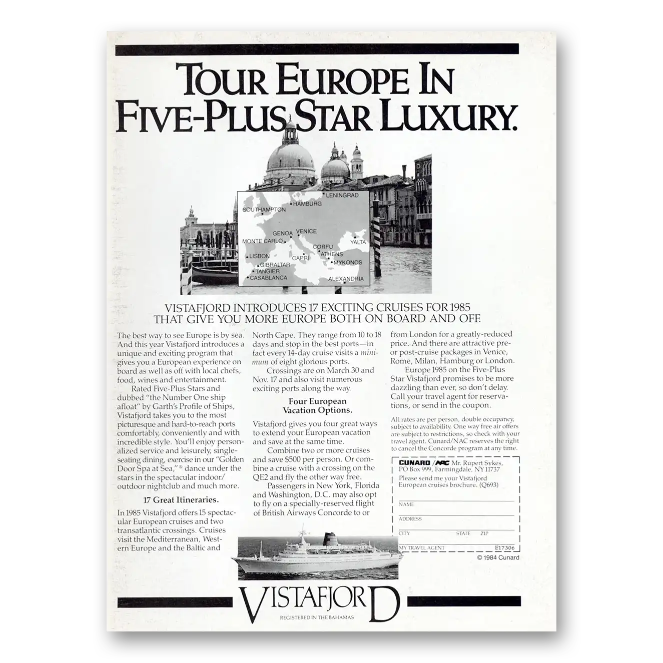 1984 Cunard Print Ad | Vistafjord
