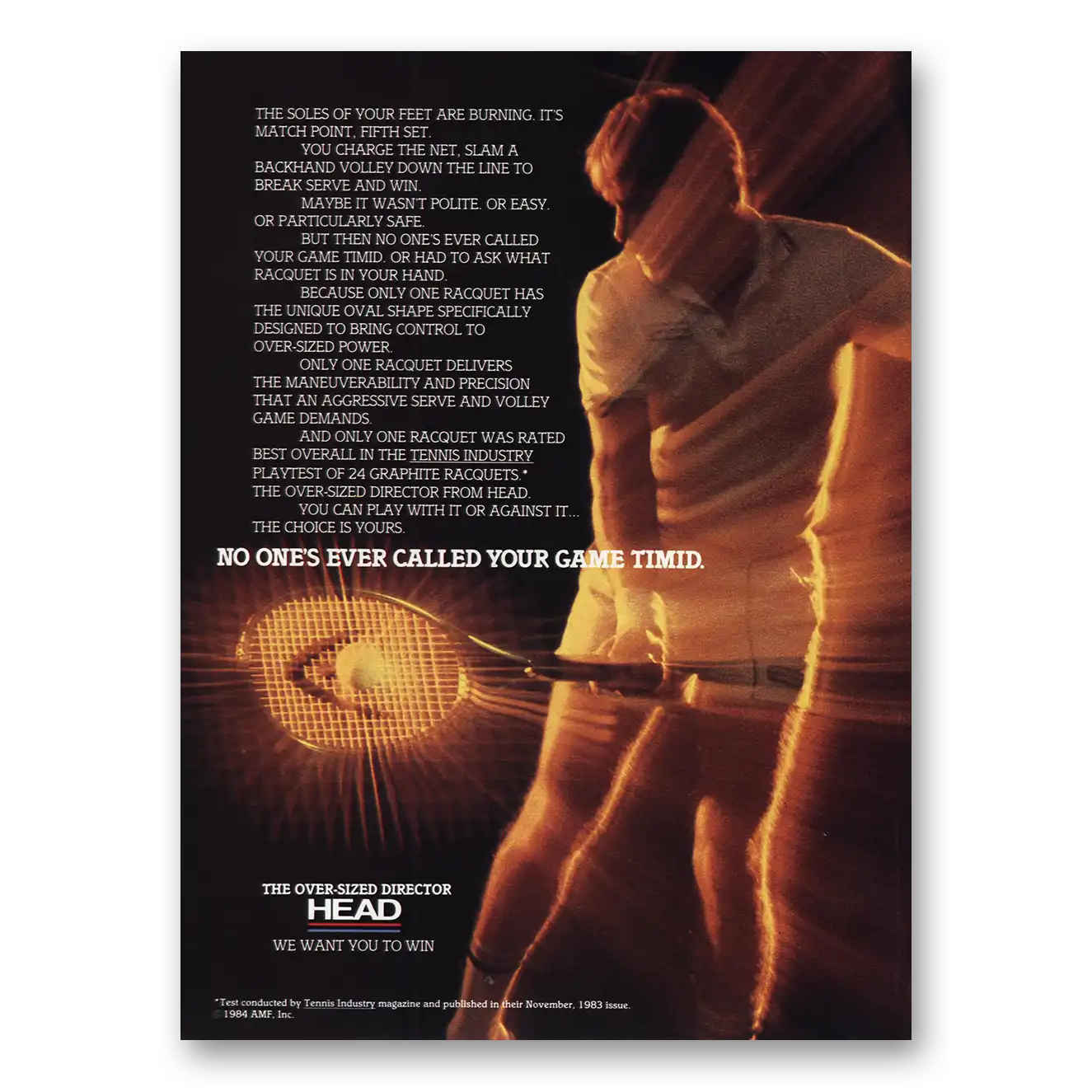 1984 Head Tennis Print Ad | Called Your Game Timid