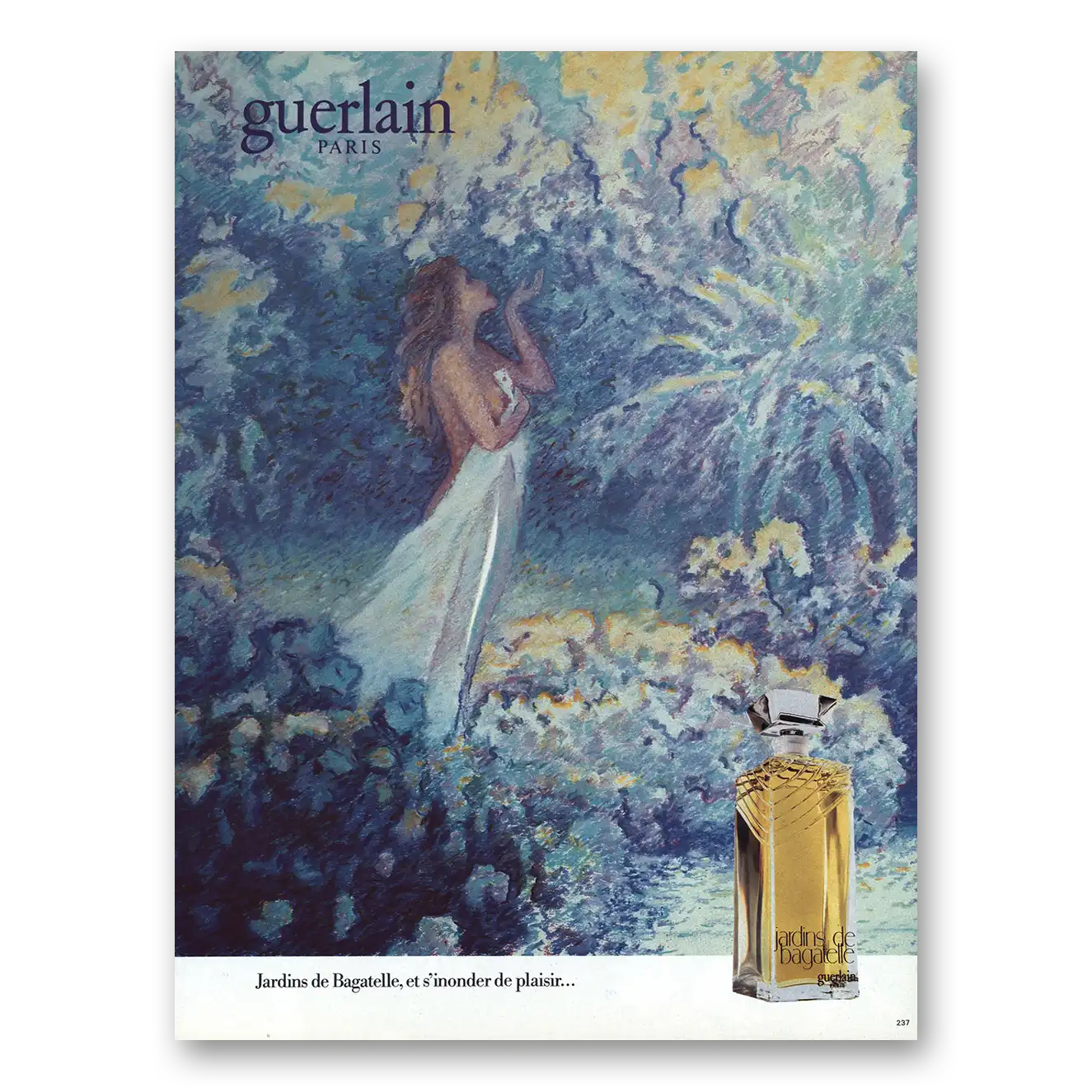 This is an original 1984 Jardins de Bagatelle Perfume print ad published by Guerlain.
