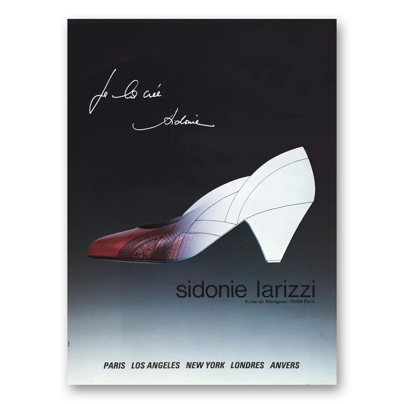 This is an original 1984 Sidonie Larizzi Shoes print ad published by Sidonie Larizzi.