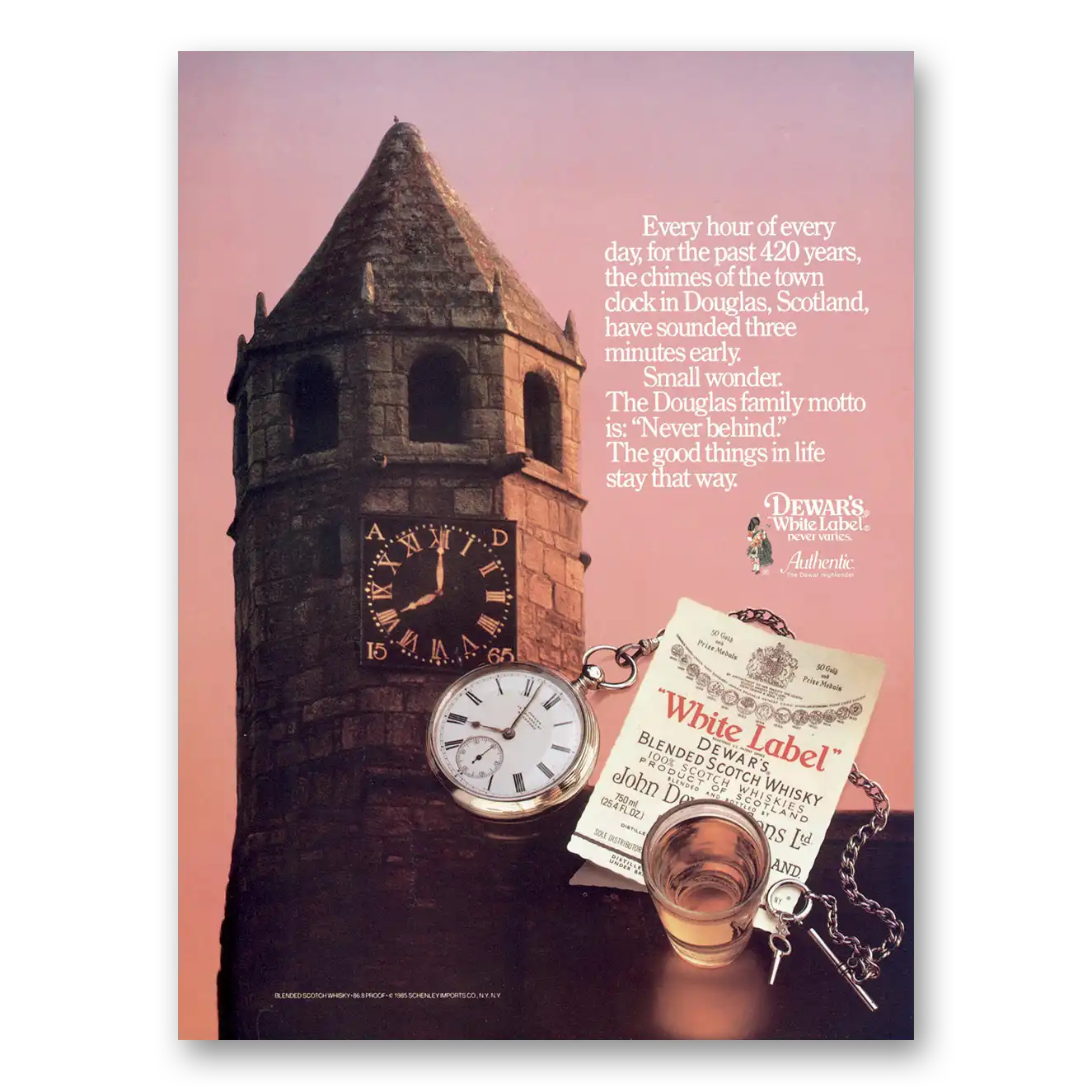 This is an original 1985 Dewars White Label print ad published by Dewars.