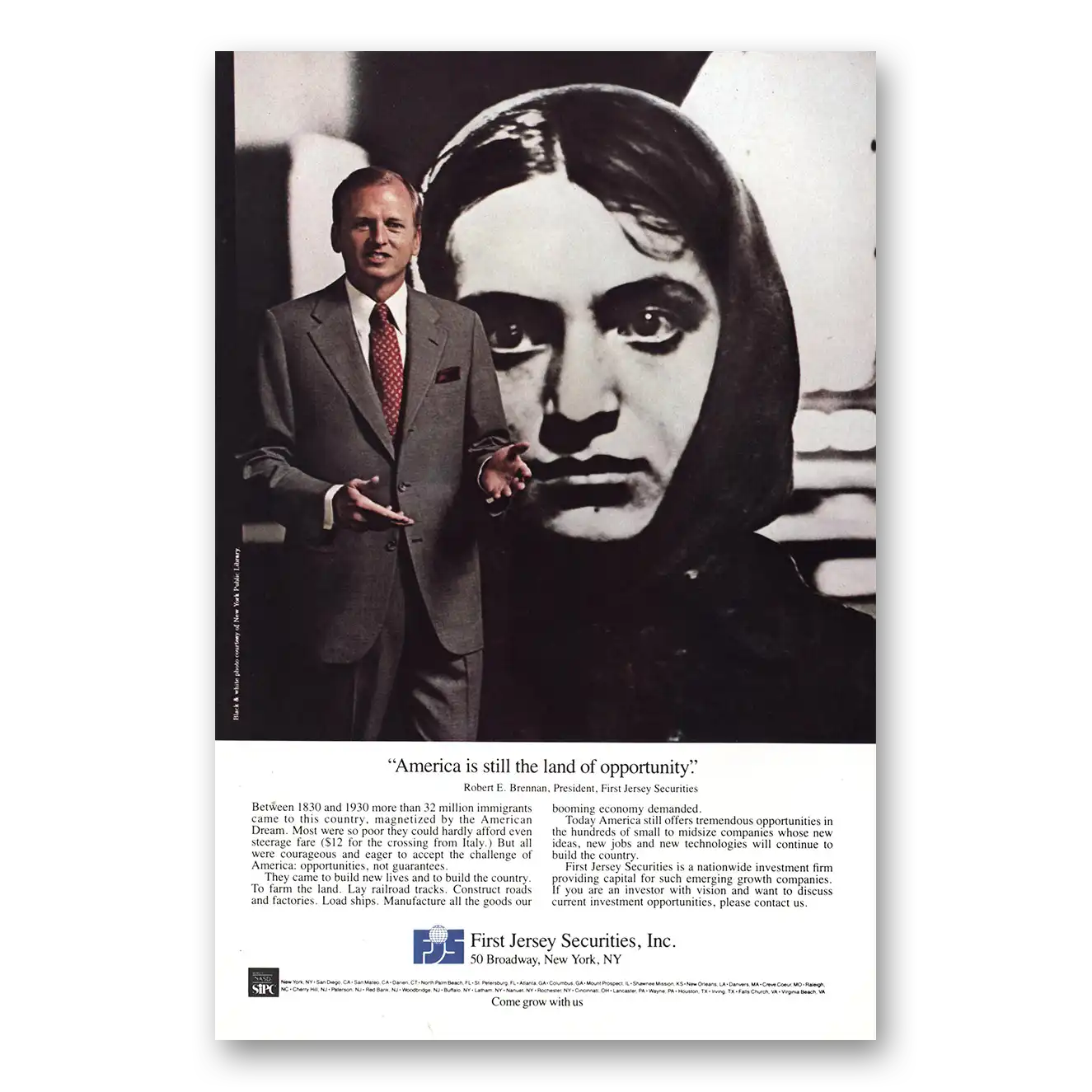 This is an original 1985 First Jersey Securities print ad published by First Jersey Securities.