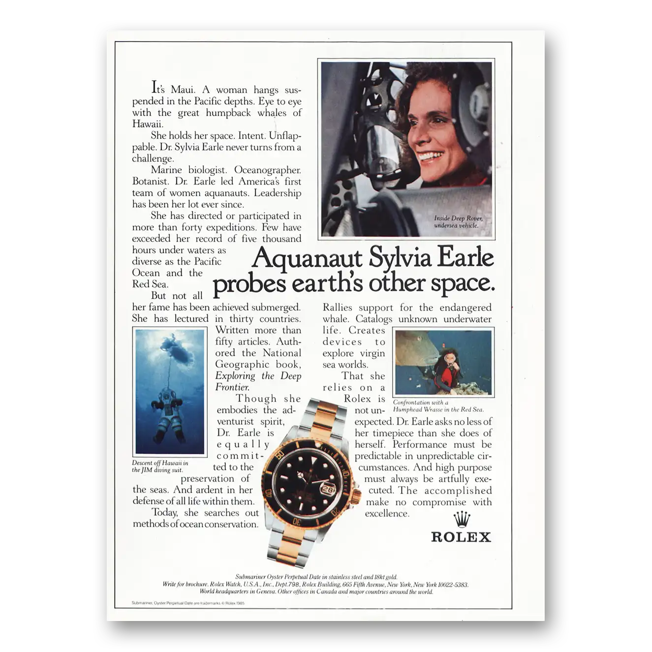 1985 Rolex Print Ad | Sylvia Earle1985 Rolex Print Ad | Sylvia Earle