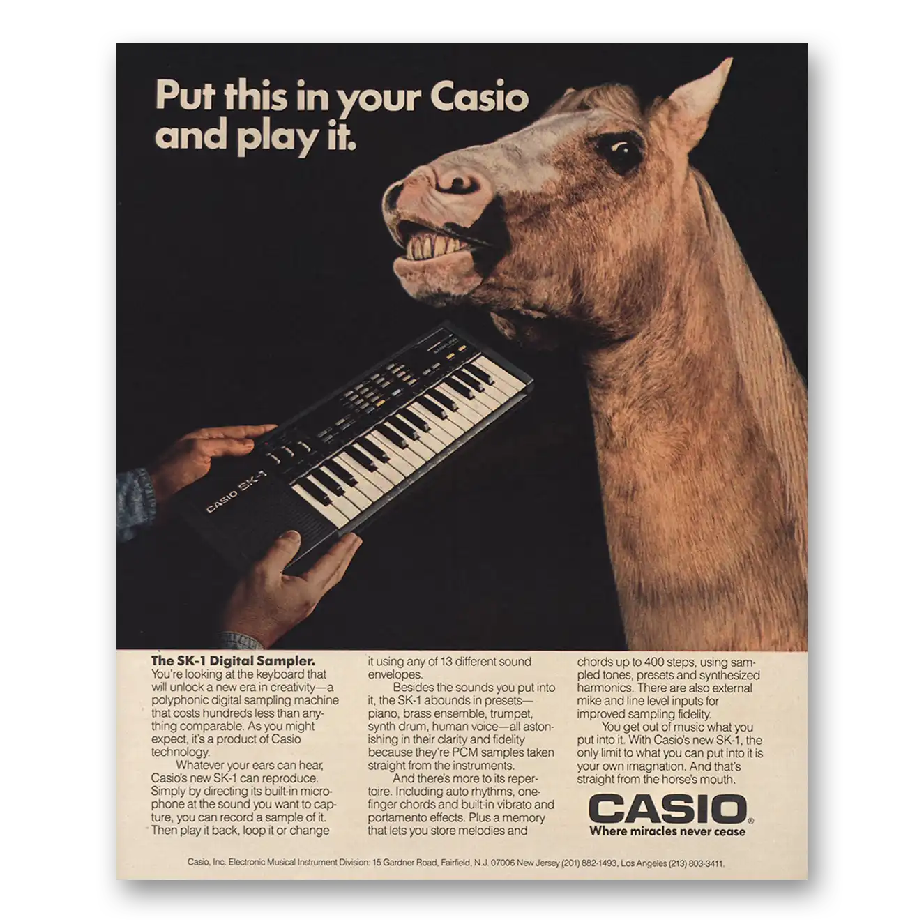 This is an original 1986 Casio Electronic Instruments print ad published by Casio.