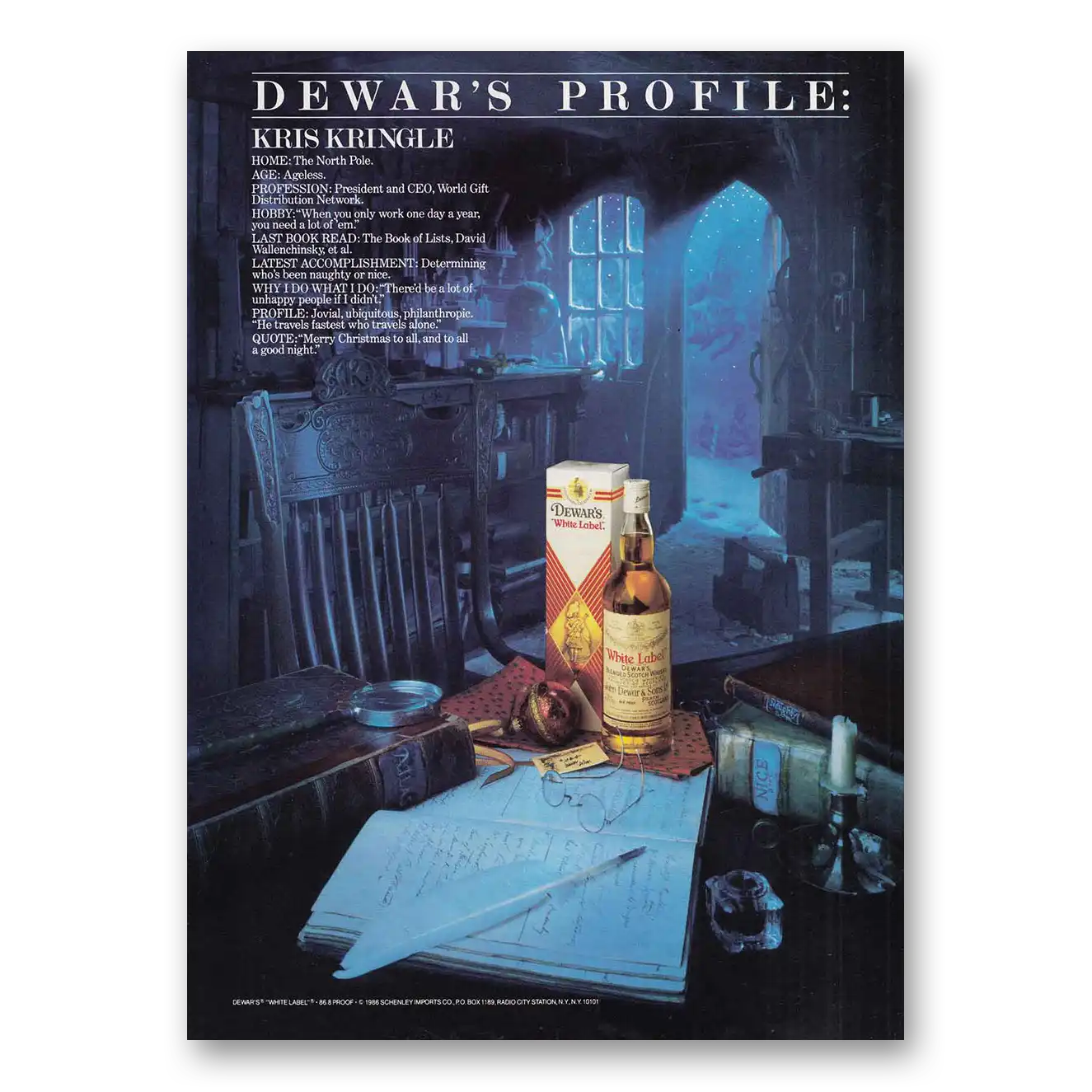 1986 Dewars White Label Print Ad | Kris Kringle
