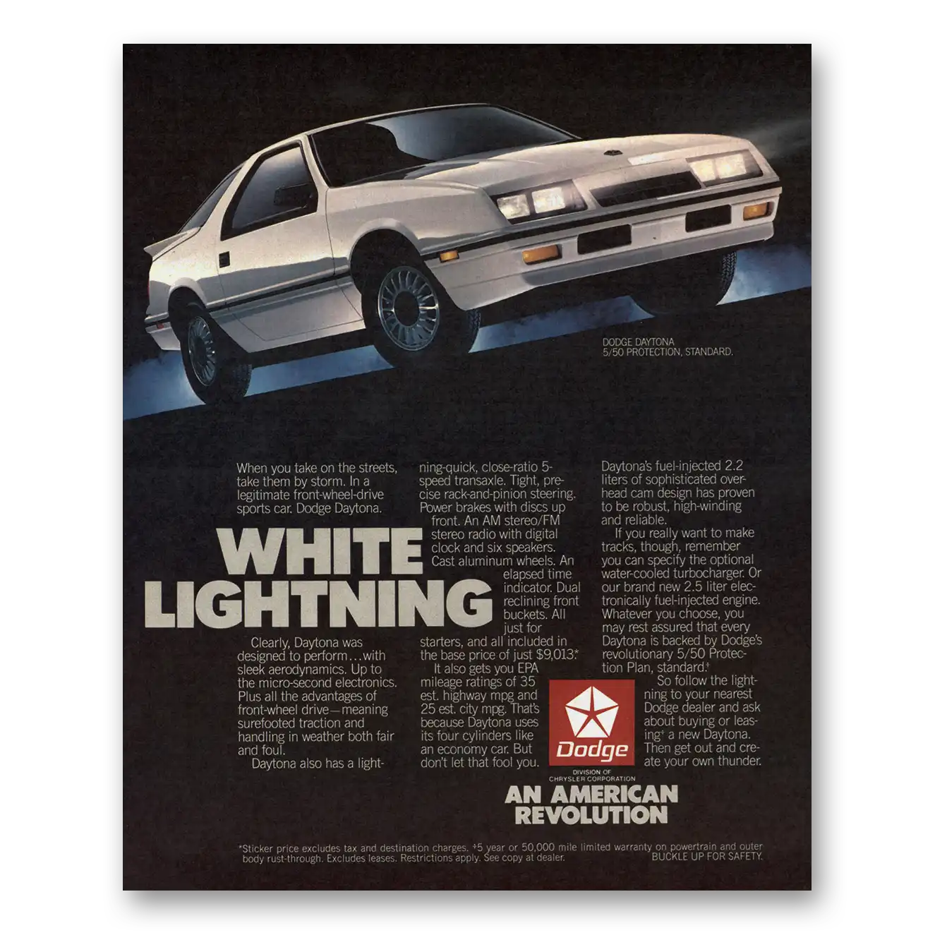 1986 Dodge Daytona Print Ad | White Lightning