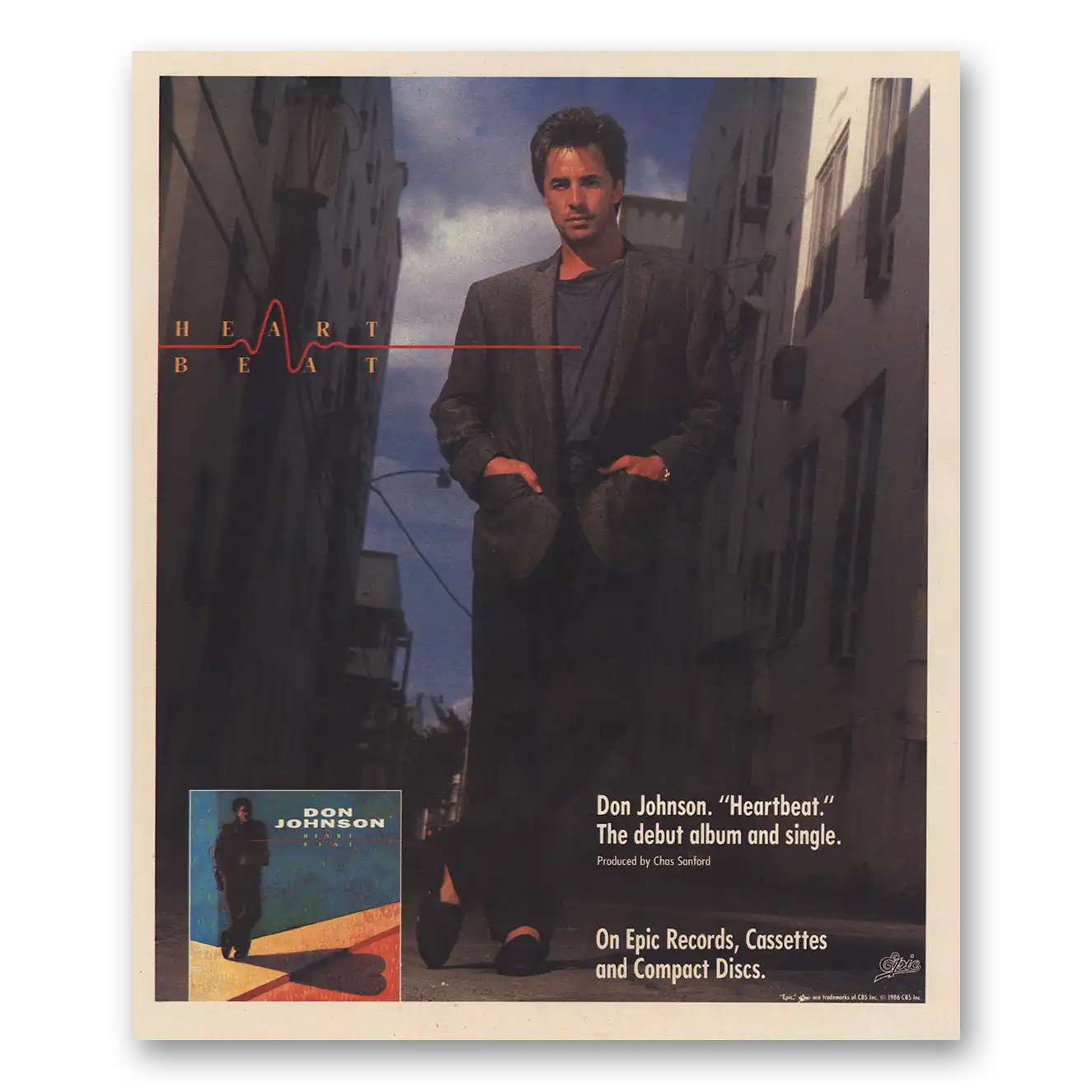 This is an original 1986 Don Johnson Promo print ad published by Epic Records.