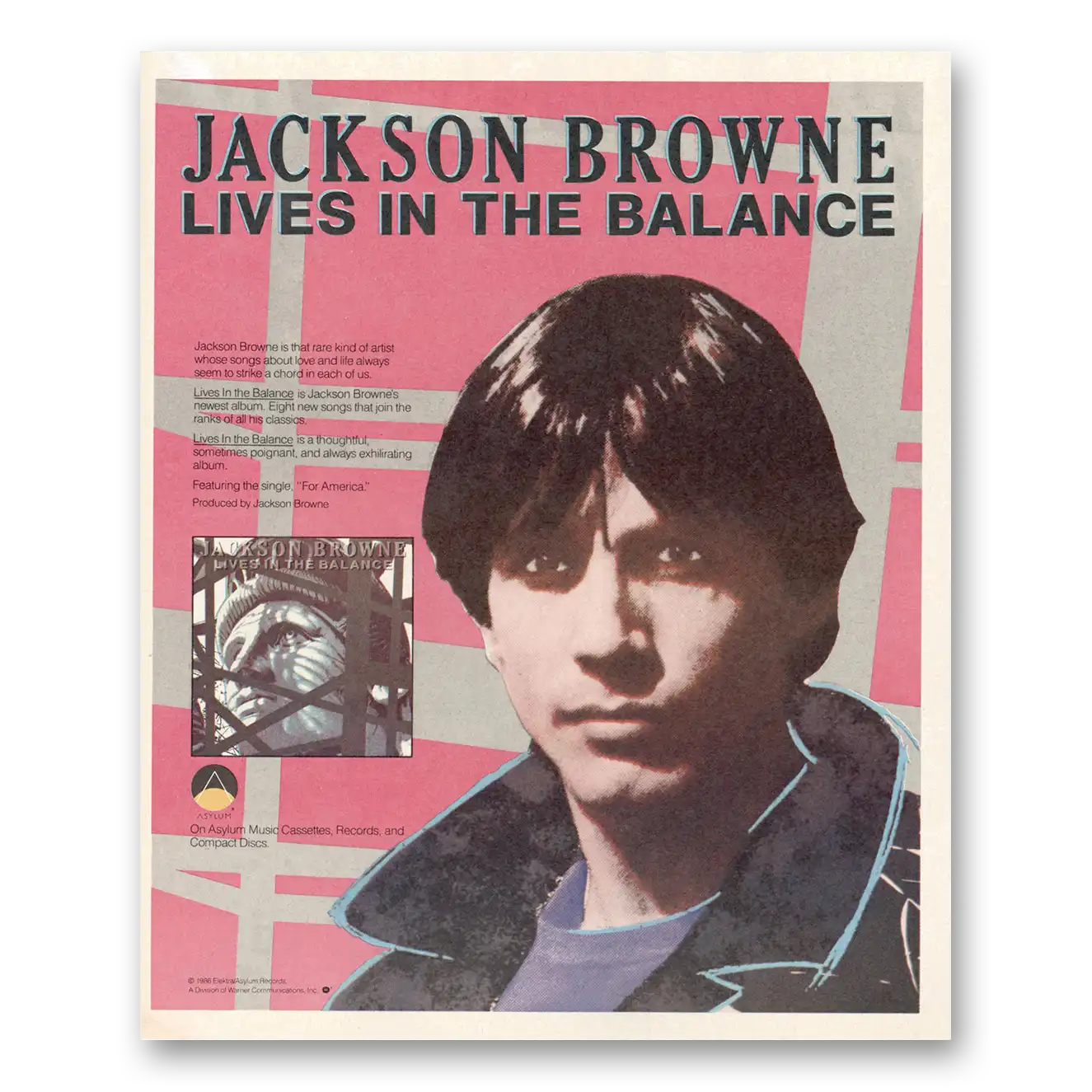 1986 Jackson Browne Print Ad | Lives Balance1986 Jackson Browne Print Ad | Lives Balance