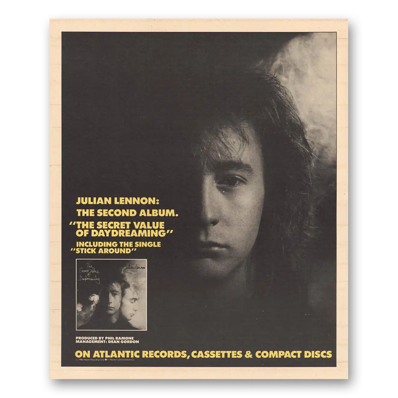 This is an original 1986 Julian Lennon print ad published by Atlantic Records.