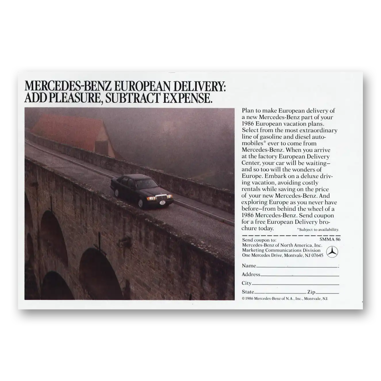 1986 Mercedes Benz Print Ad | European Delivery