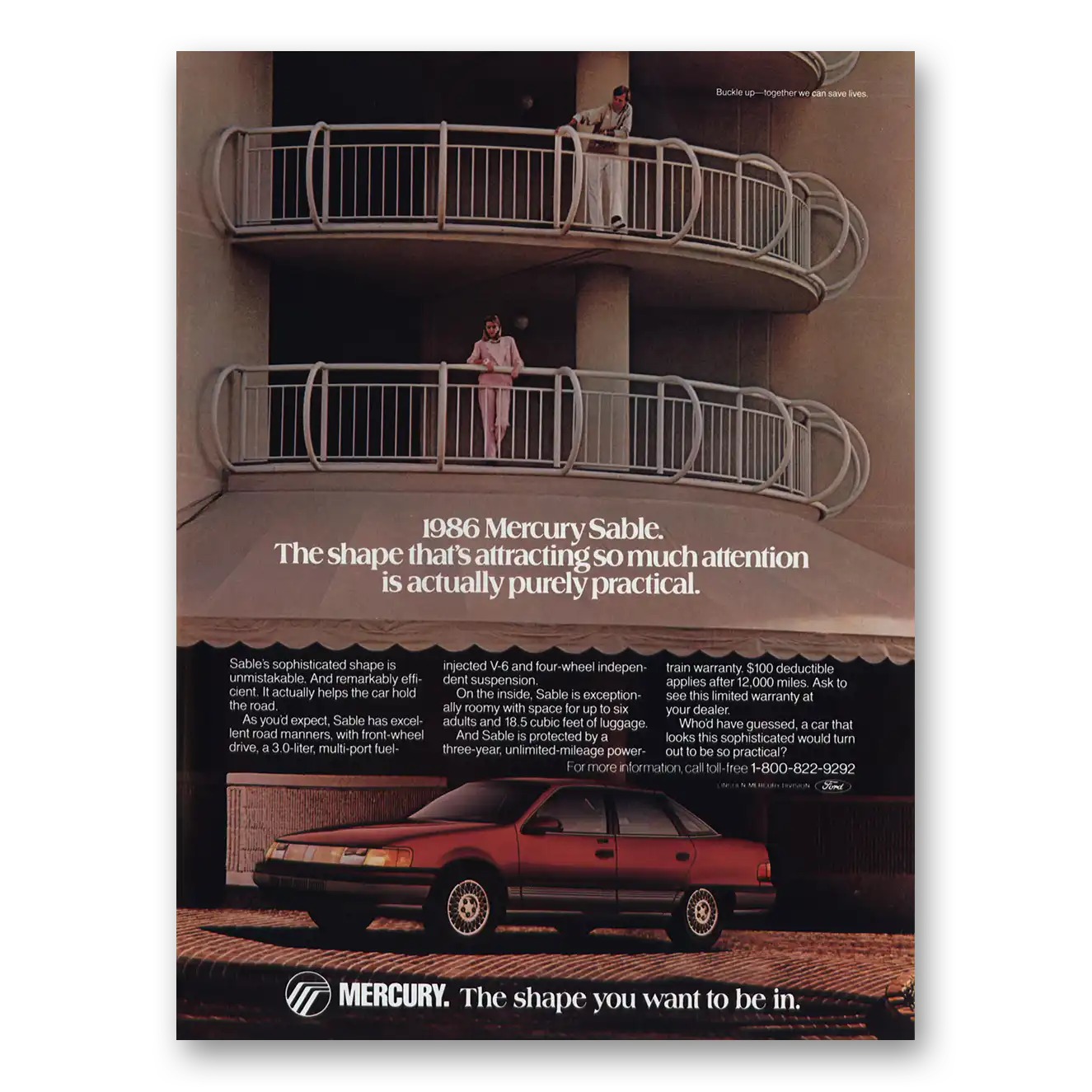 This is an original 1986 Mercury Sable print ad published by Mercury.