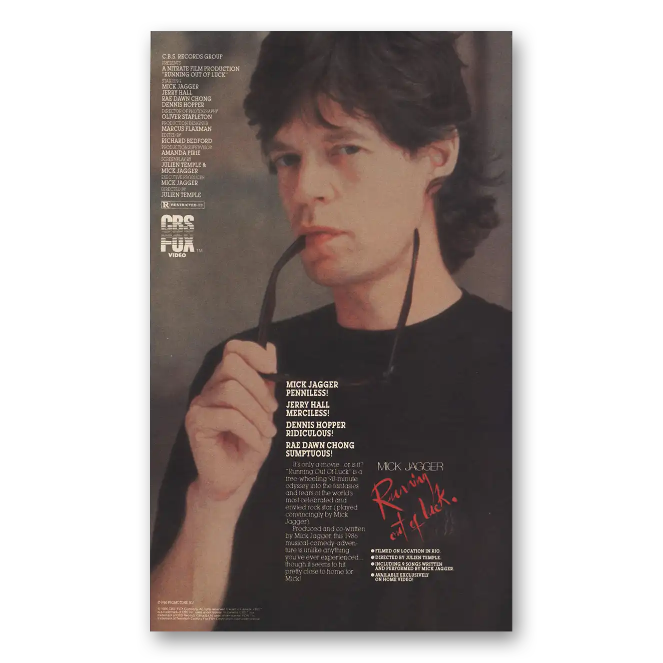 1986 Mick Jagger Promo Print Ad | Running Out Luck