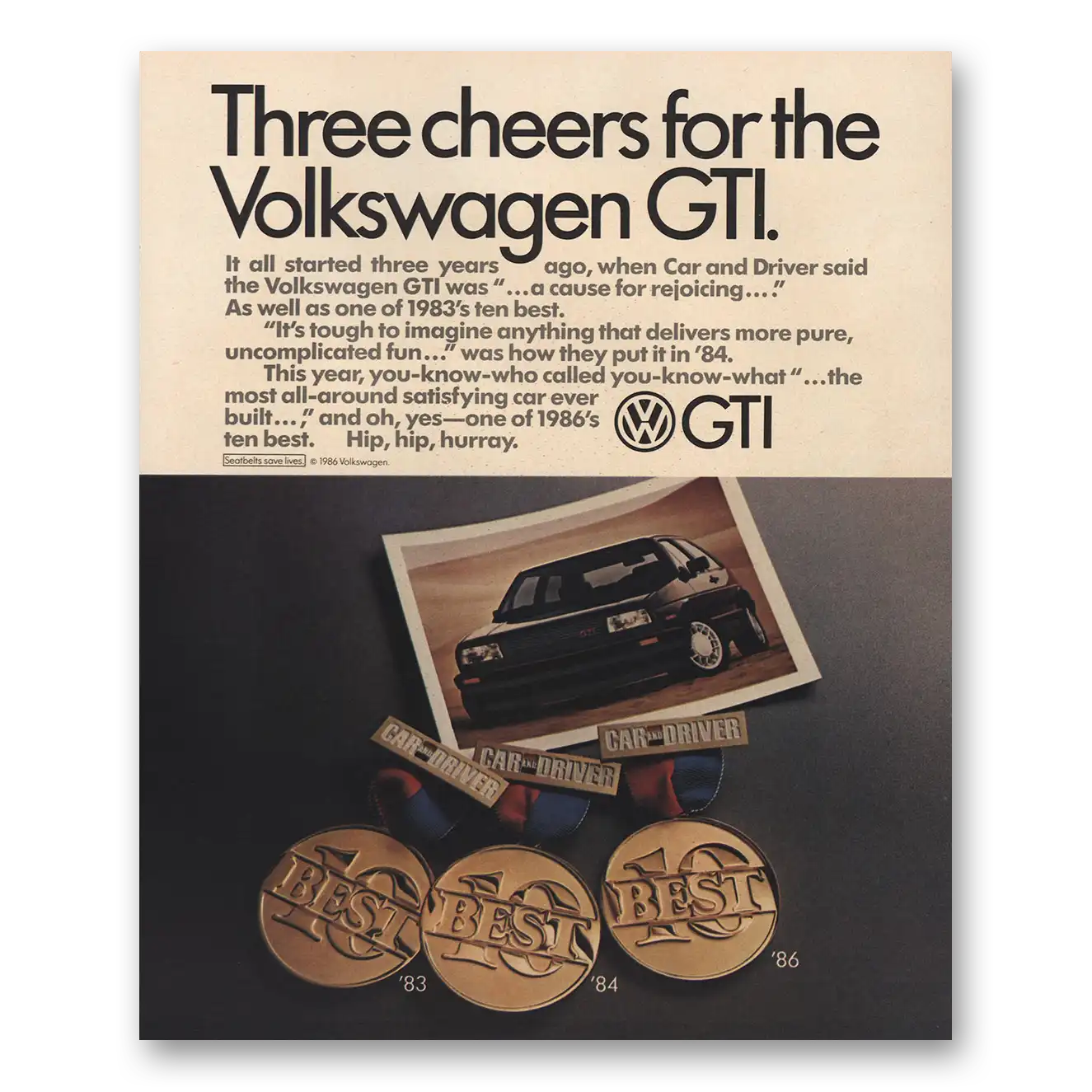 1986 Volkswagen GTI Print Ad | Three Cheers