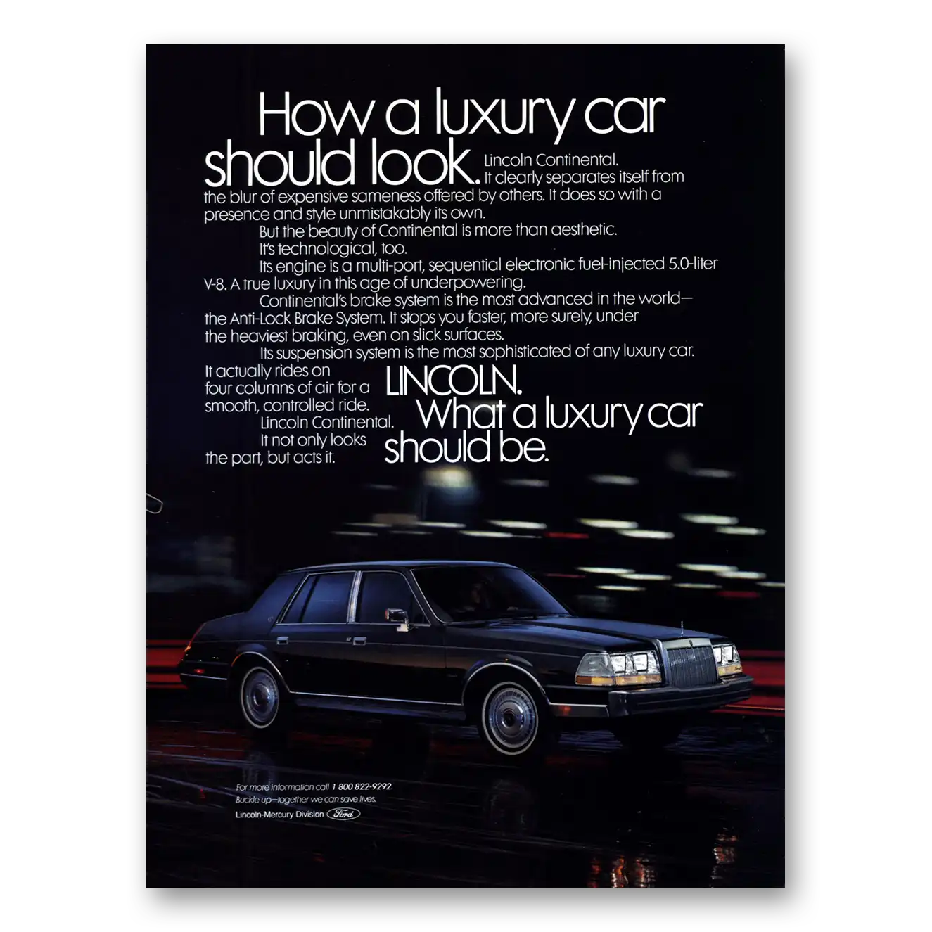 This is an original 1987 Lincoln Continental print ad published by Lincoln.