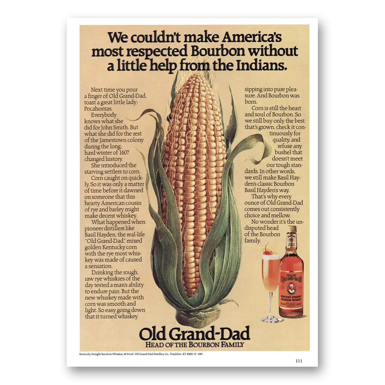 This is an original 1987 Old Grand-Dad Bourbon Whiskey print ad published by Old Grand-Dad.