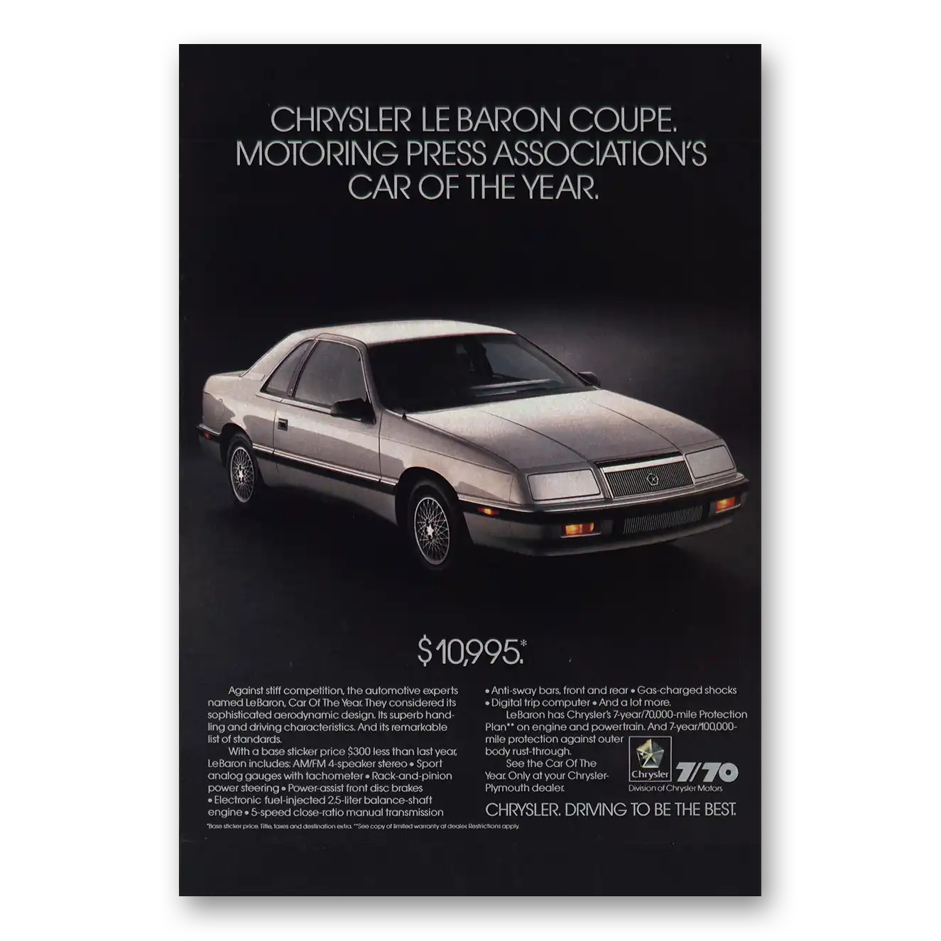 1988 Chrysler LeBaron Print Ad | Car Of The Year