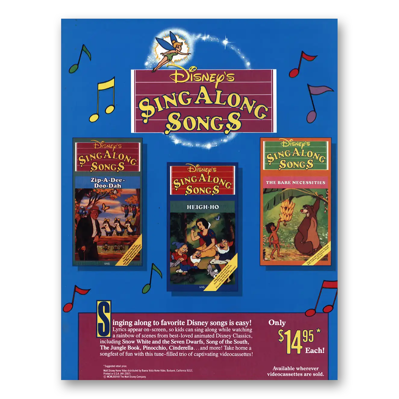 This is an original 1988 Disneys Sing a Long Songs print ad published by Walt Disney Home Video.