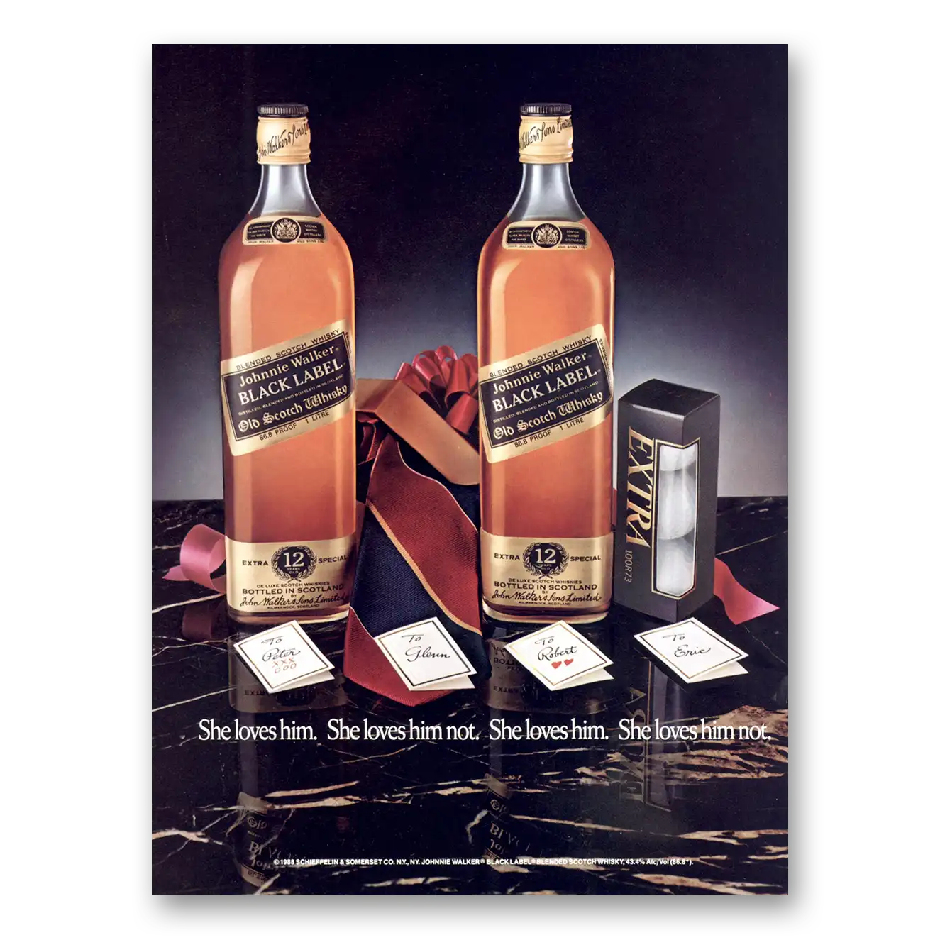 1988 Johnnie Walker Black Label Print Ad | She Loves Him